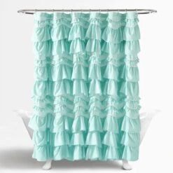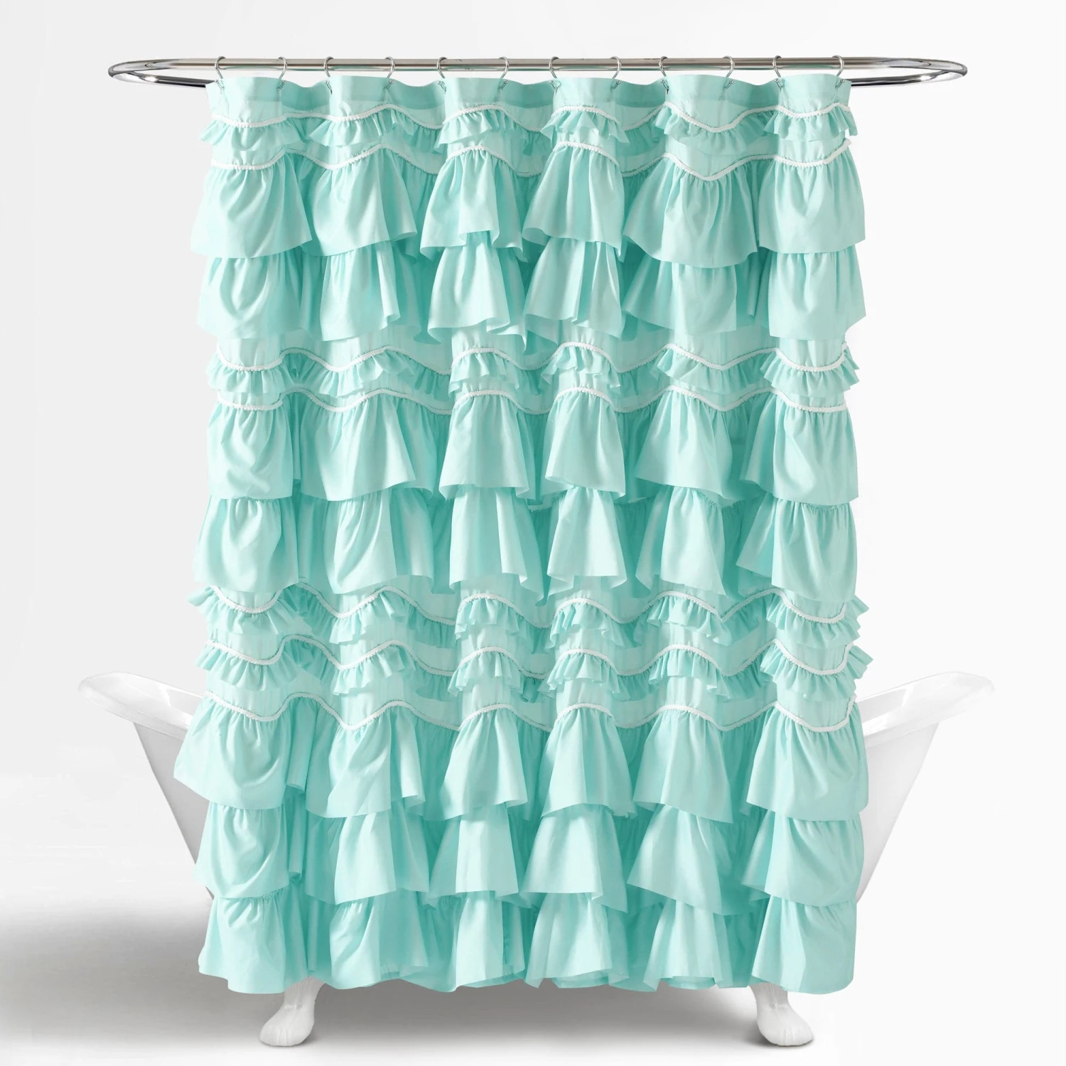This Kemmy Shower Curtain is the epitome of every aspect needed in the home of a woman: class, style, fun and beauty all in one. The allure is enhanced with elegantly layered ruffles, further decorated with 3-D pom poms, adding lovely texture to your bathroom.