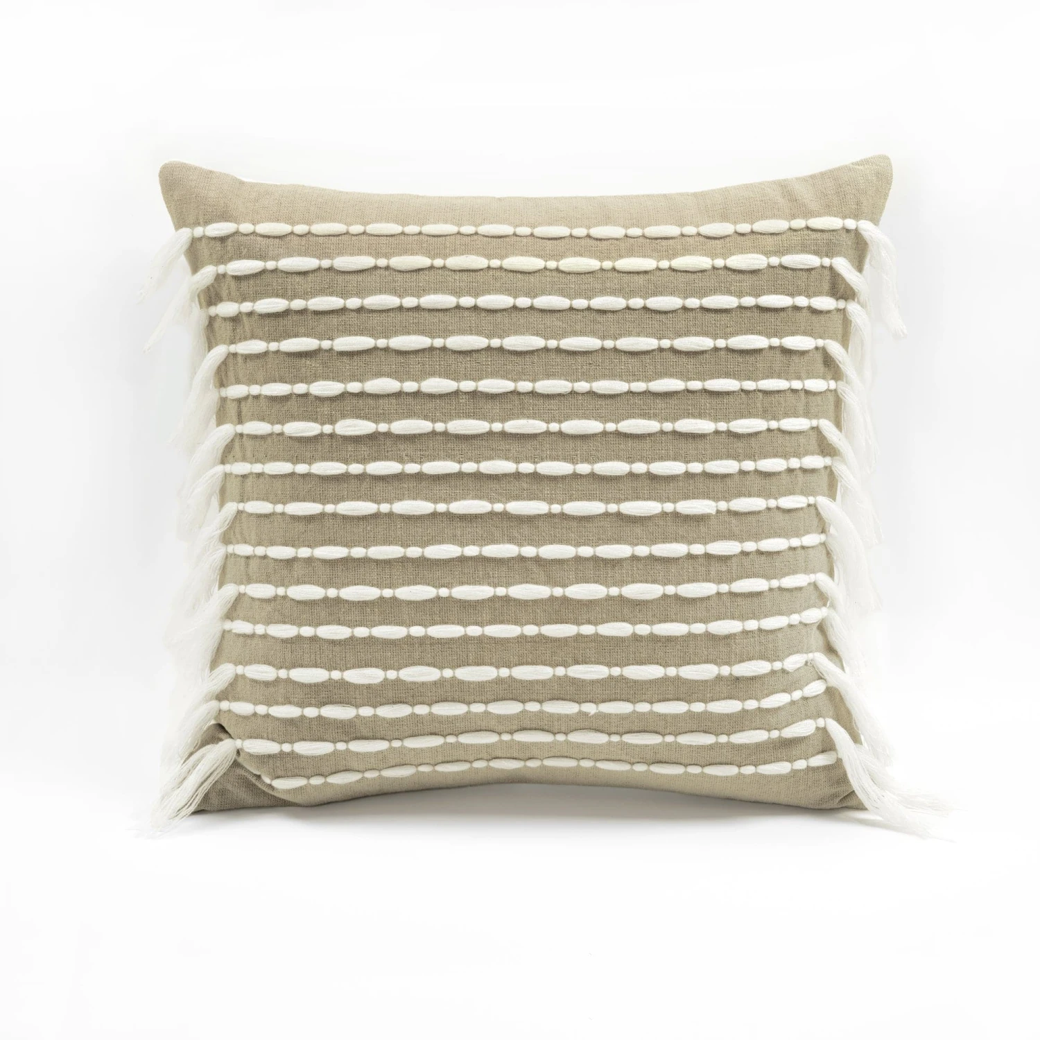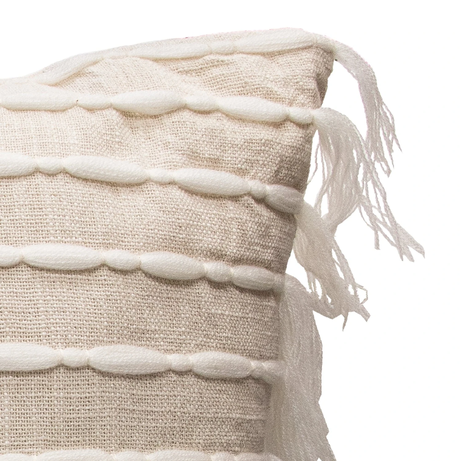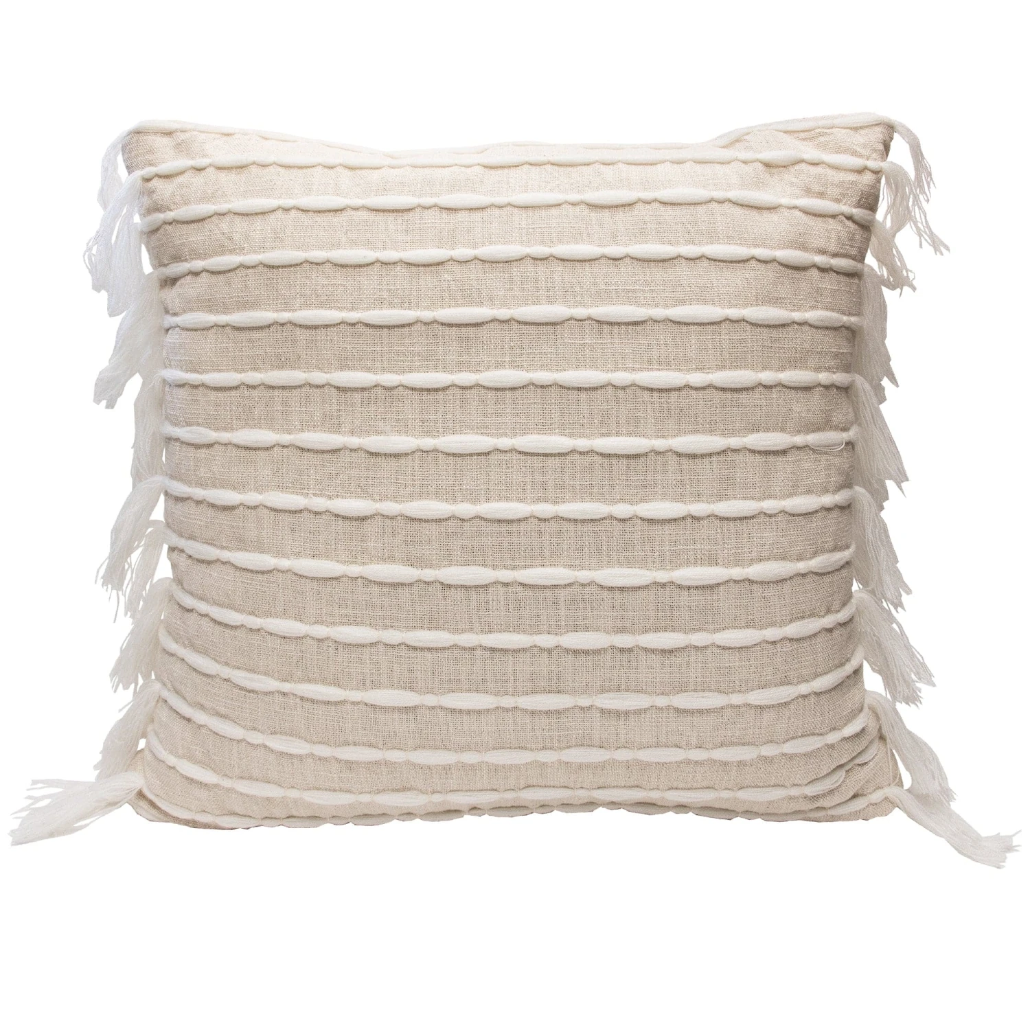 This cotton-blend decorative throw pillow has a versatile design that you could use in just about any room and any interior design style, from modern farmhouse to boho and even to minimalist. Our Linear Tassel Decorative Pillow is soft to the touch and very trendy. This uniquely designed pillow can be used during any season.
