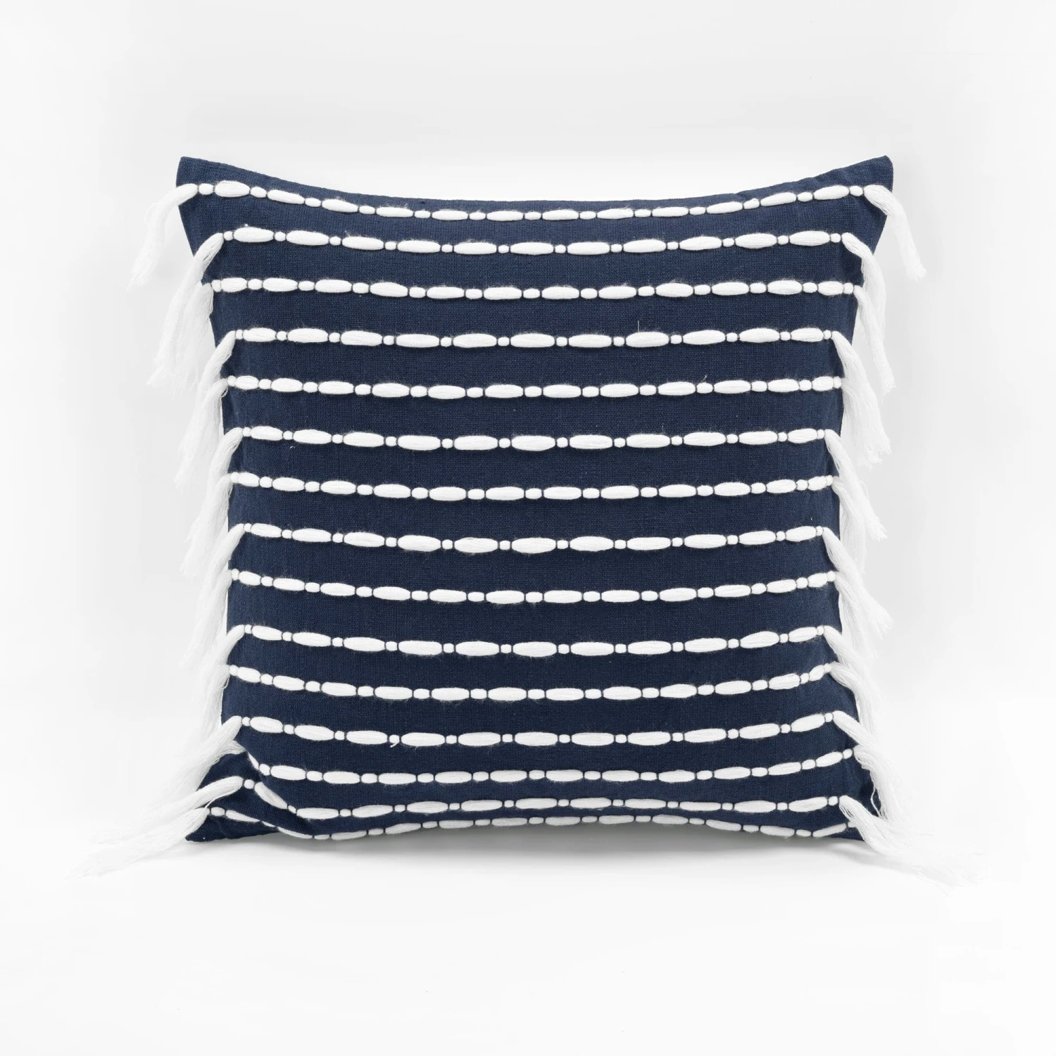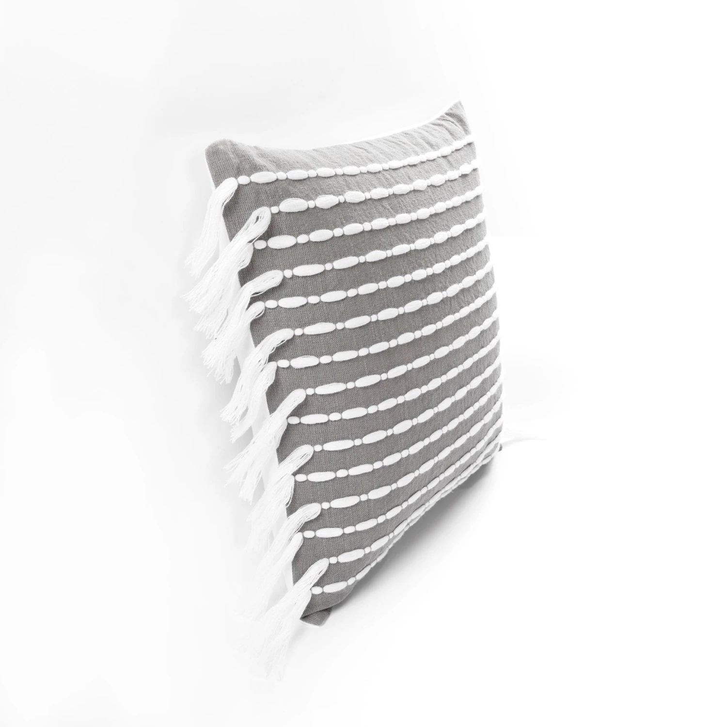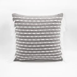 Give your home a stylish makeover with this cotton decorative pillow. Two sides have tassels along most of the edge and the front has a textured stripe pattern made from sewn on acrylic threads. Our Linear Tassel Decorative Pillow makes a lovely accent piece for your overall home decor theme.