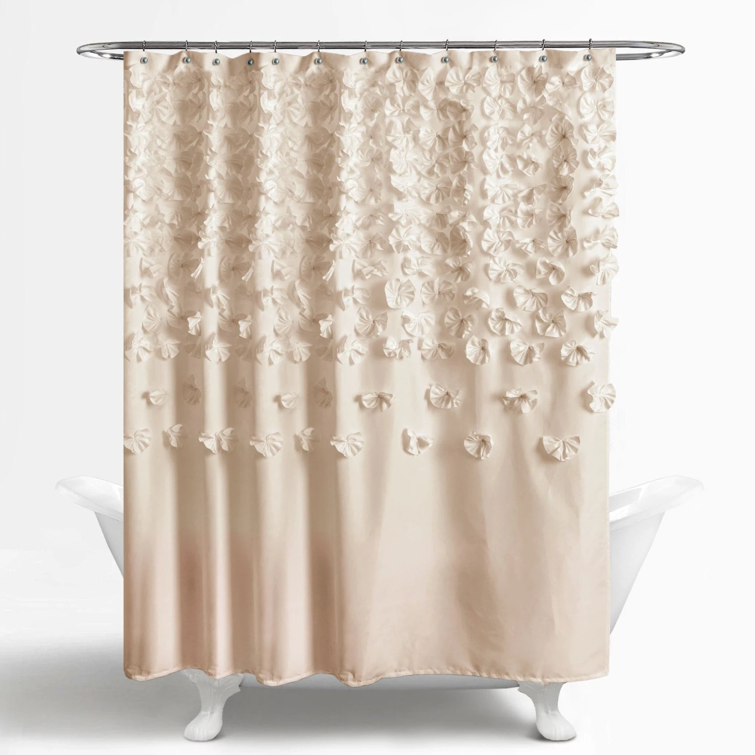 Our Lucia Shower Curtain is made with soft brushed poly and decorated with all handmade bows. It adds a sophisticated and romantic look to your master bathroom or guest bathroom.