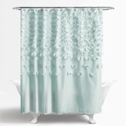Measuring 72 inches wide by 72 inches high, this Lucia Shower Curtain is the perfect size for most any bath tub. It’s available in multiple color choices and easily hangs with any shower curtain rings or hooks (not included).