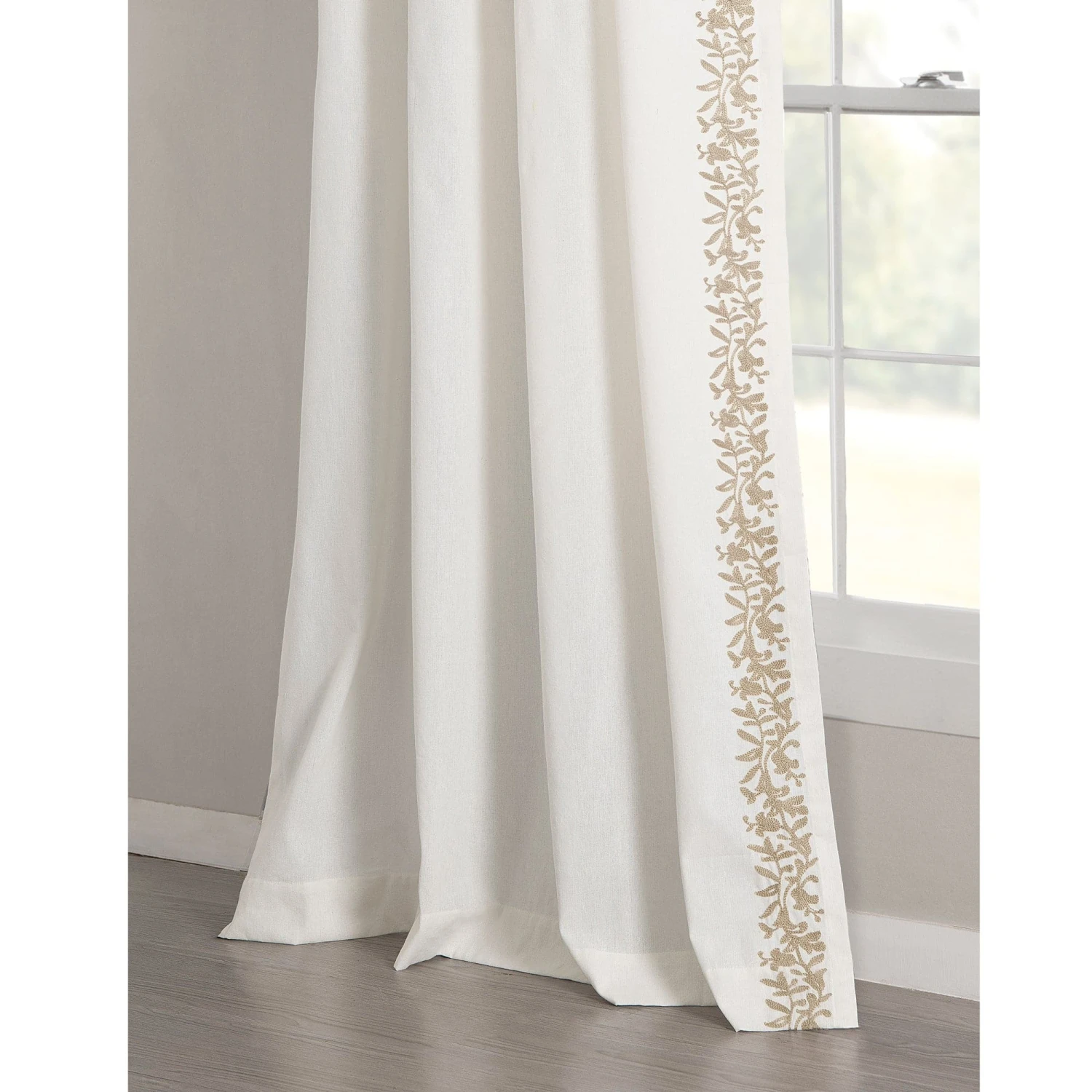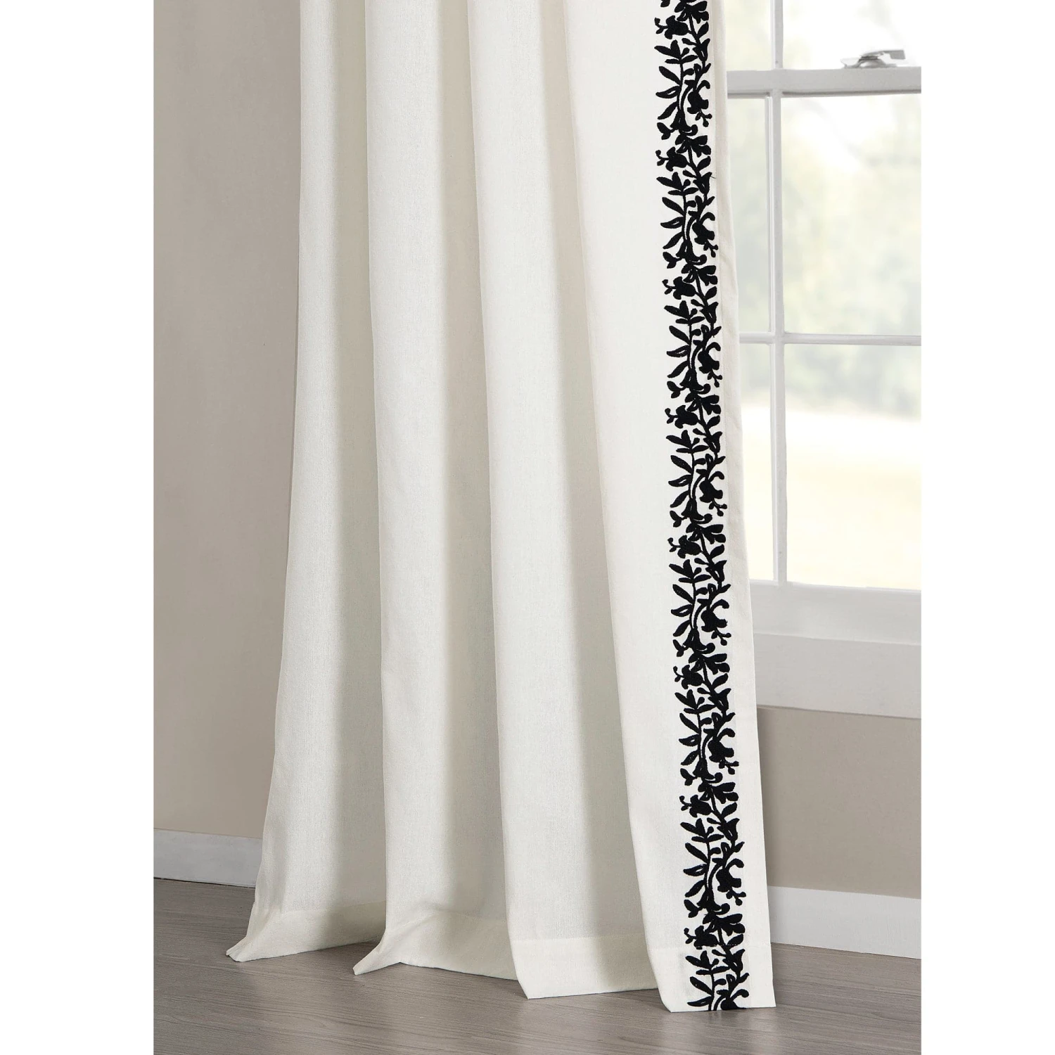 Curtains play a big role in the ambiance of a room. Design your warm and inviting space with this Luxury Modern Flower Linen Like Embroidery Border Window Curtain Panel. Made of high-quality material with a linen look, this curtain design captivates with its elegant style and textured trim. The border offers a modern spin on a traditional style that is perfect for any home.