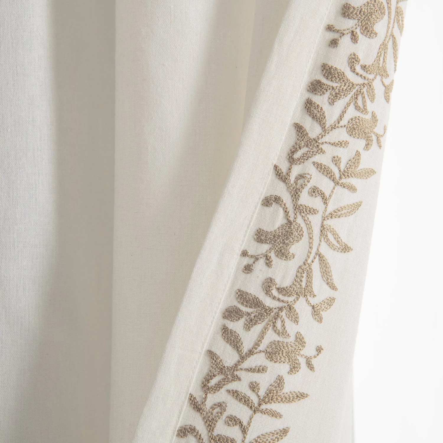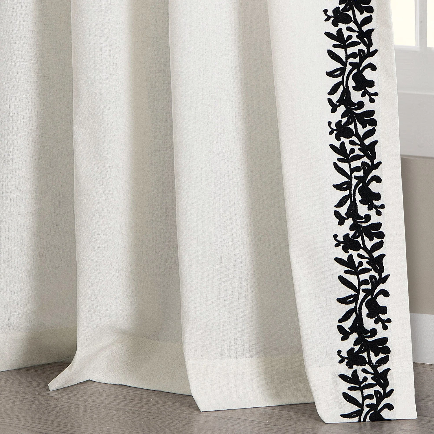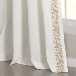 Slight weave variations are authentic to this natural fiber blend and create a one-of-a-kind look. The floral embroidery along the edge gives these panels extra pizzazz. This Luxury Modern Flower Linen Like Embroidery Border Window Curtain Panel will let in plenty of natural light while providing the privacy you need from neighbors and other outsiders.