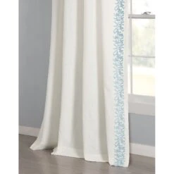 Trimmed with elegance and the texture of high quality faux linen, this Luxury Modern Flower Linen Like Embroidery Border Window Curtain Panel instantly frames your windows with an elevated style. The simple addition of color and pattern decorates your space with casual sophistication.