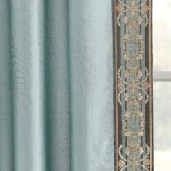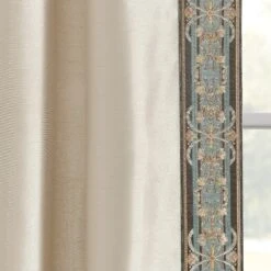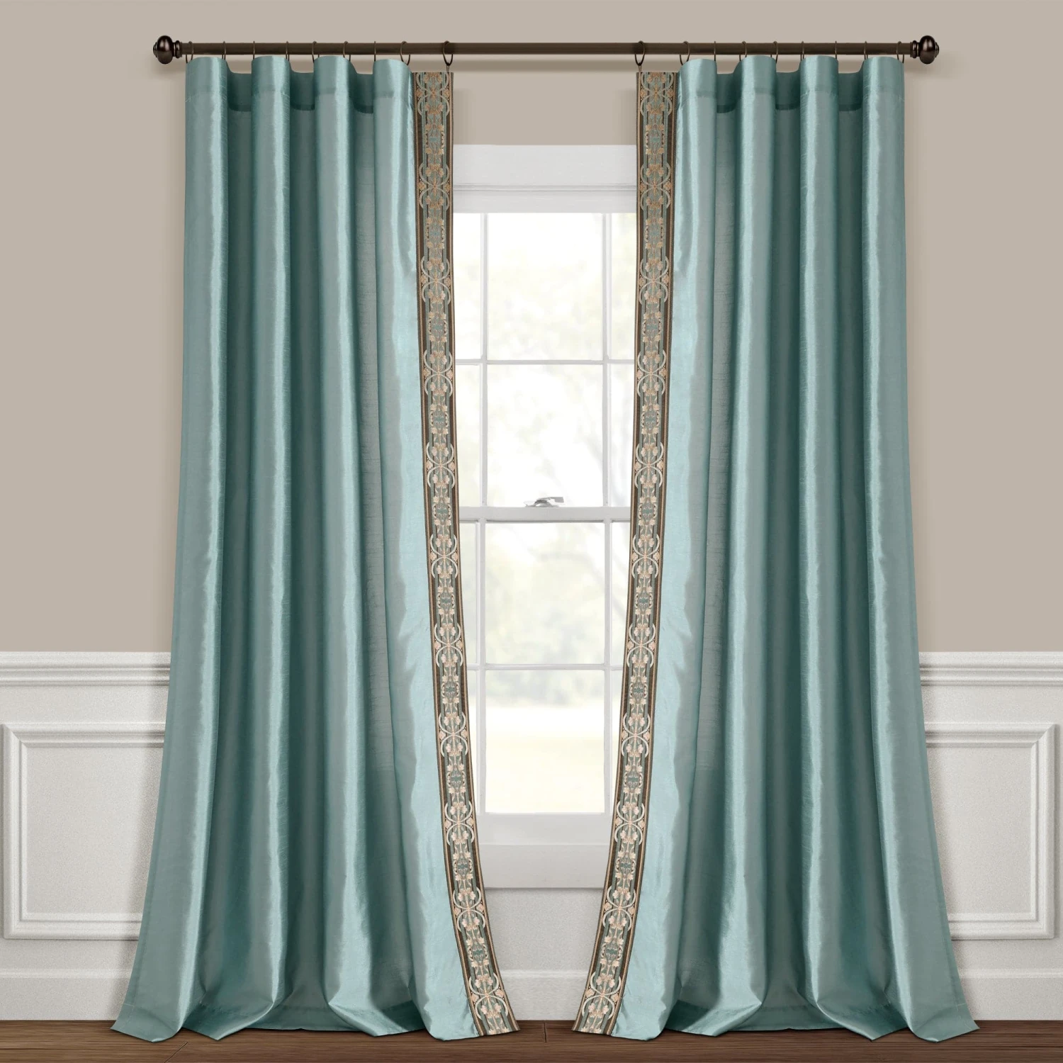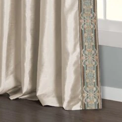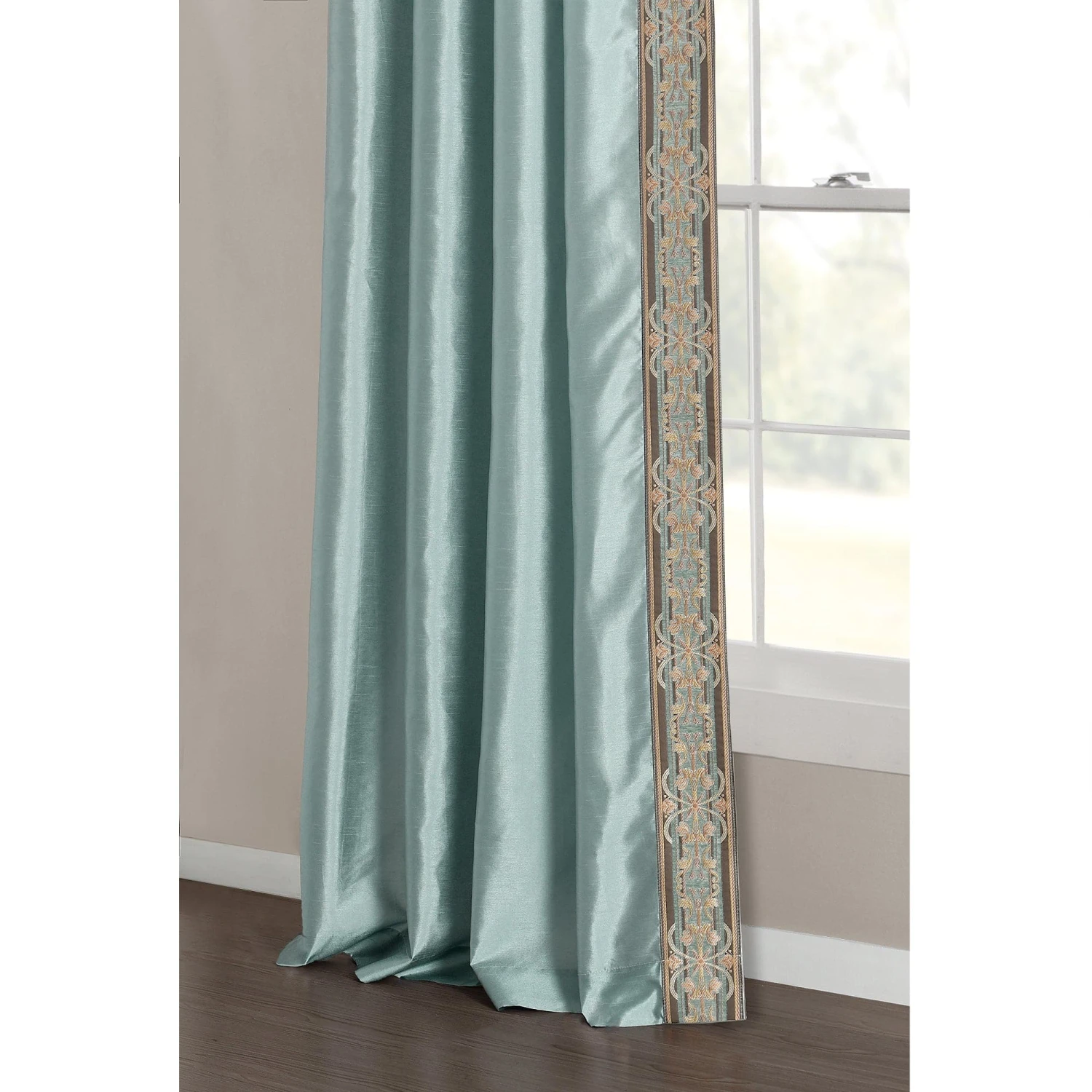 Elevate your space with elegance when you coordinate this Luxury Traditional Regency Faux Silk Border Trim Window Curtain Panel with similar decor inspired by this custom look. This style is sold by the single panel. Each individual panel measures 52 inches wide and 84 inches long.