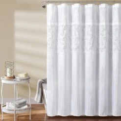 Lush Decor has enhanced its products for your health and well-being. This Maria Shower Curtain in White/Silver is STANDARD 100 by OEKO-TEX® certified, which means the fabric, dyes and all components have been tested in an independent laboratory and certified against a list of more than 350 harmful substances.