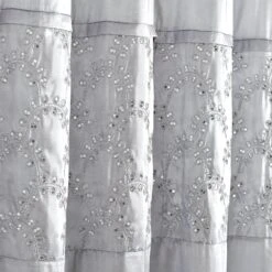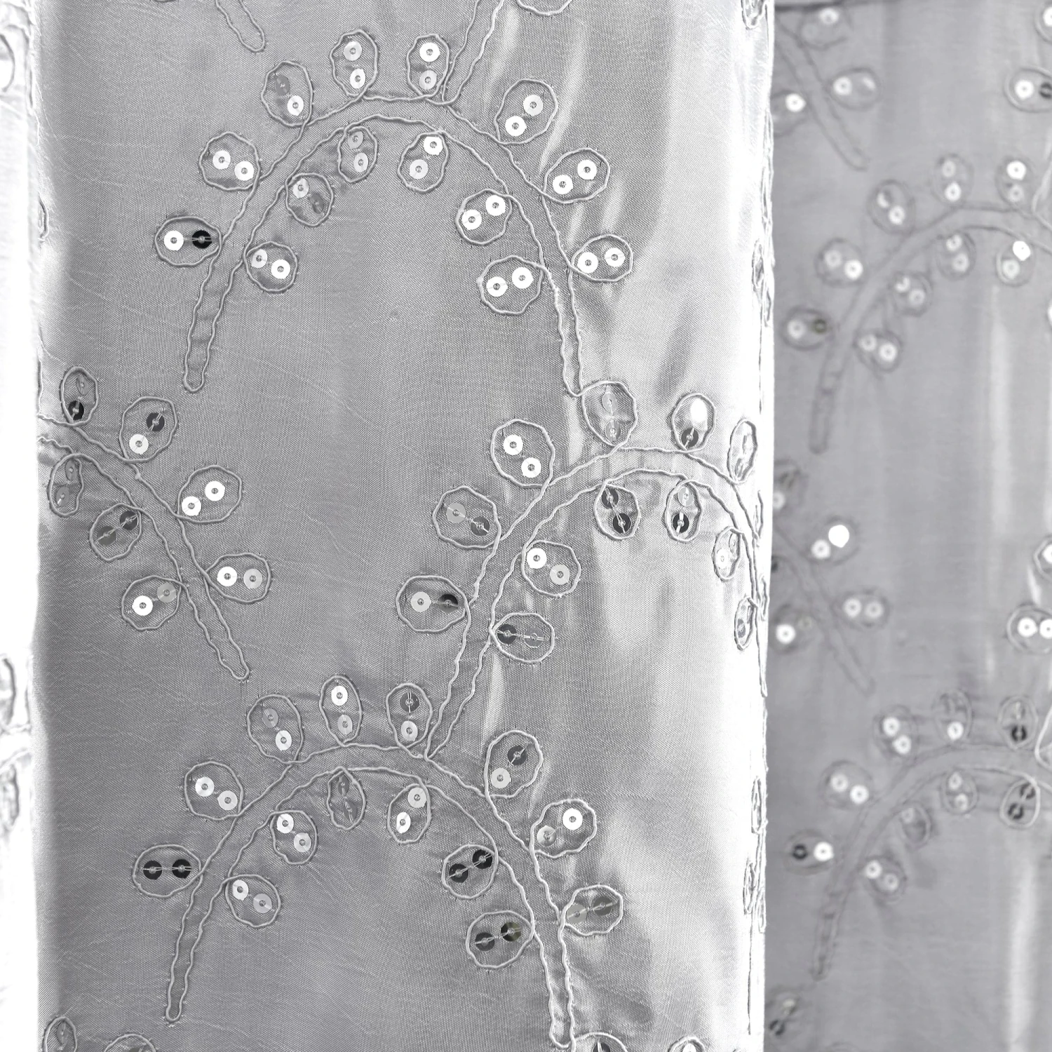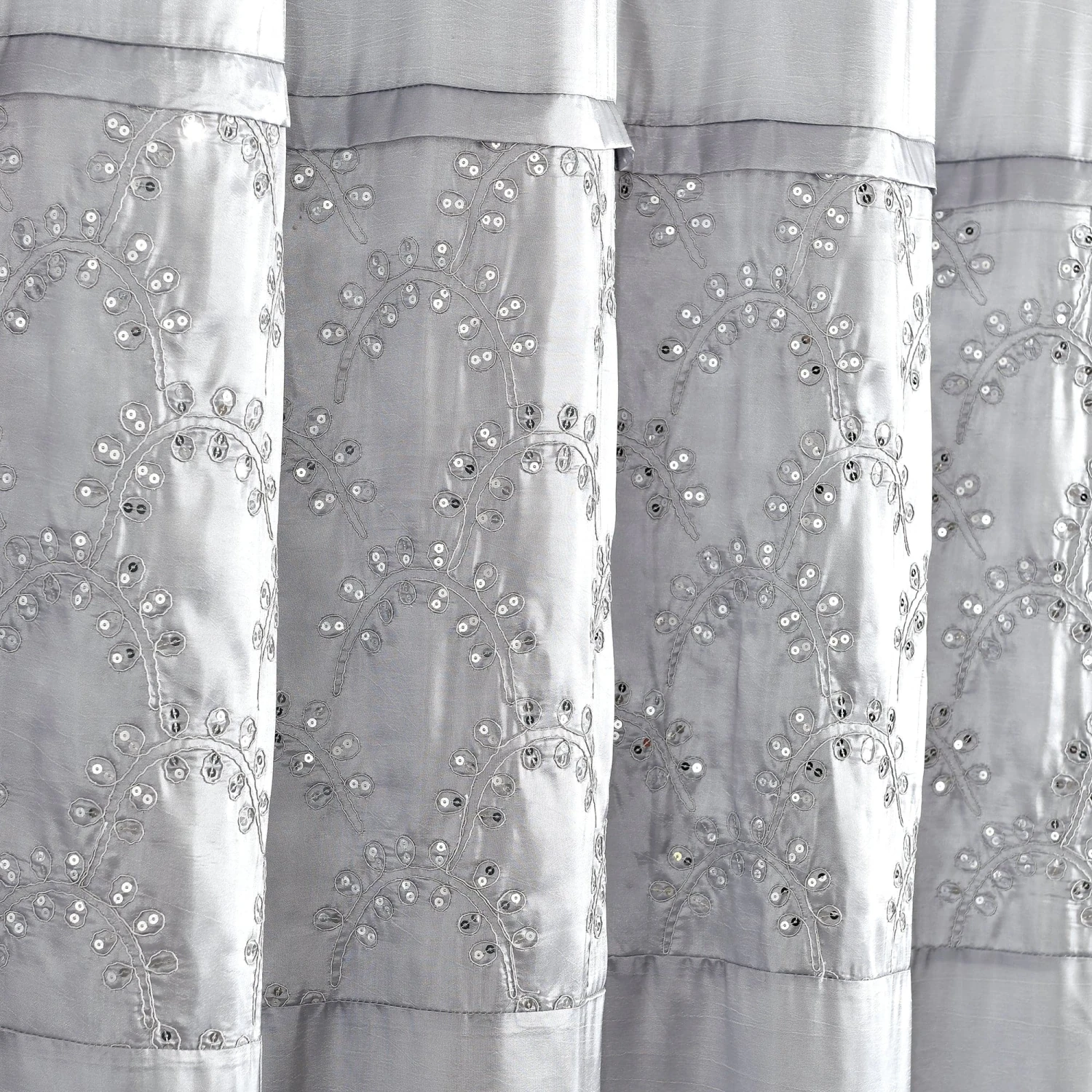 This Maria Shower Curtain is perfect for the person who is looking to make a bold statement in their bathroom. Fabricated from taffeta, it features cord embroidery and sequins.