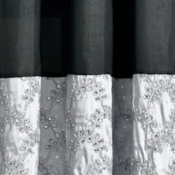 The cord embroidery featured in this Maria Window Curtain Panel shows off a unique technique by embellishing this window panel with lace and sequins, along with the fashionable colorblock design.