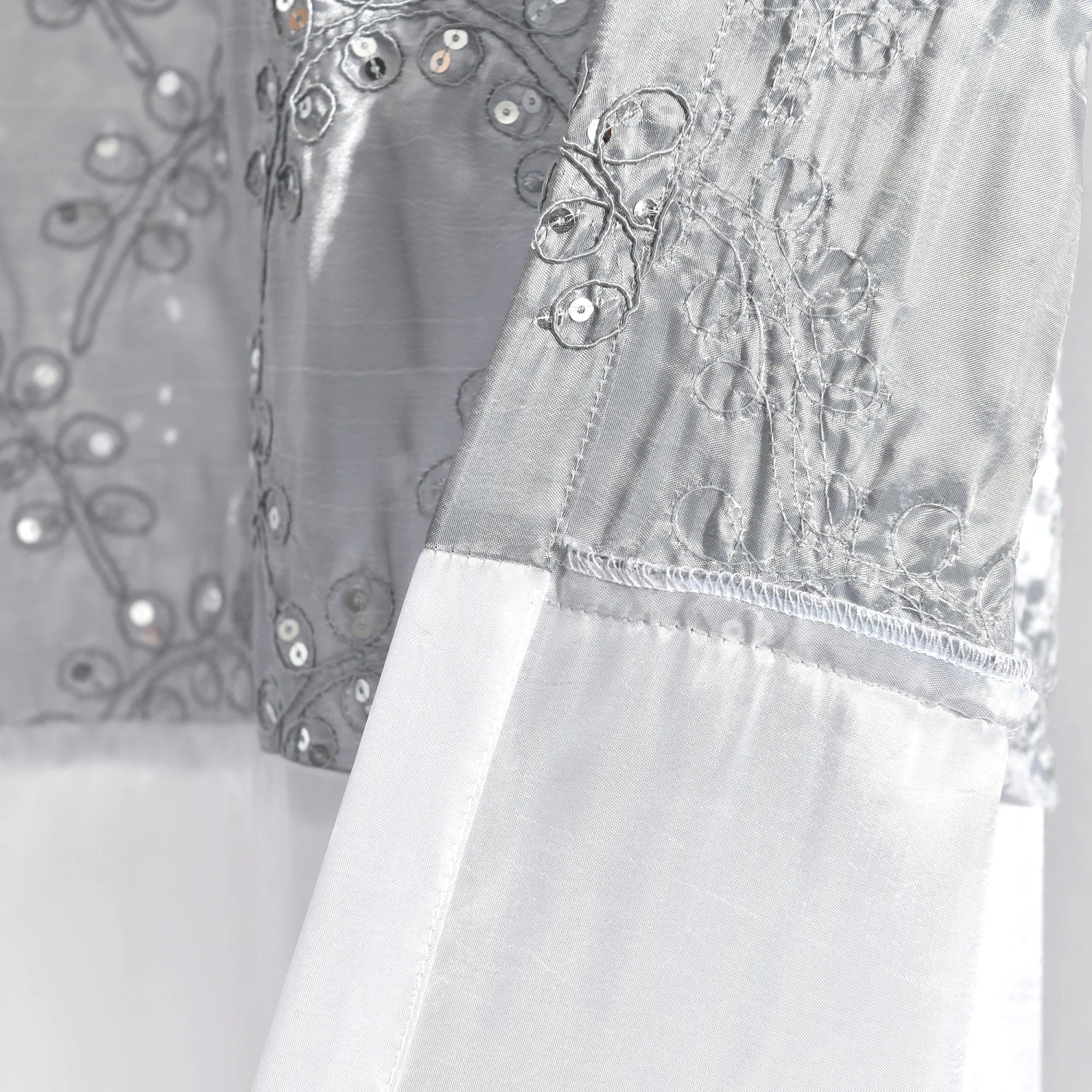 Glamorize any room with this regal looking decorative window curtain panel. Fabricated from taffeta, it features a colorblock design and cord embroidery laced with sequins for a show stopping texture. Hang this Maria Window Curtain Panel in any room and feel like royalty.