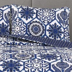 This beautiful cotton reversible quilt set will truly make you “marvel”. The colors and pattern resemble a sea floor, making it perfect for a coastal themed bedroom. With its Suzani pattern, this Marvel Quilt 3 Piece Set is also perfect for globally inspired decor themes.