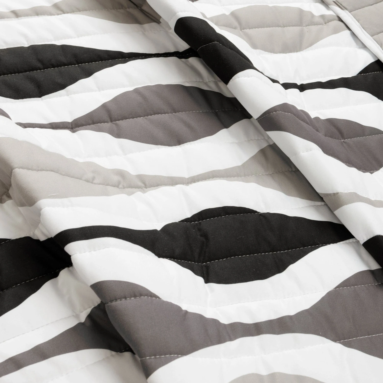 Let your bold personality shine through your decor with this Mid Century Geo Reversible Quilt 3 Piece Set. This eclectic design combines three colors in a wavy and retro inspired pattern. Center your bedroom decor around this unique quilt set.