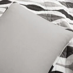 The front side of this Mid Century Geo Reversible Quilt 3 Piece Set will add plenty of energy to your space and is definitely an eye-catching centerpiece. Because it’s reversible, you can also tone down the look as often as you like simply by flipping the quilt and shams over to the other side. The reverse is a much more subtle solid color design with quilting details.
