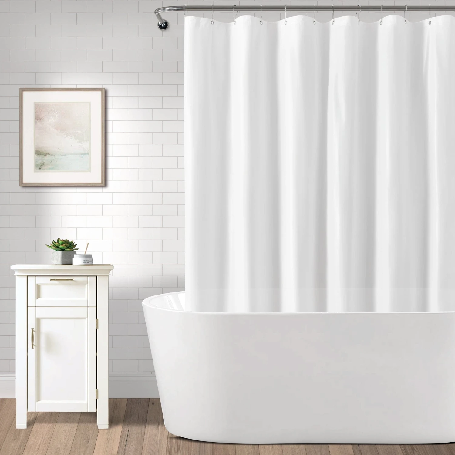 Enjoy a relaxing shower experience knowing your floor will be dry, when you hang our protective Mildew-Resistant Shower Curtain Liner. The mildew resistant material will ensure a long lasting life for your liner. Grommets line the top of the liner for easy hanging.