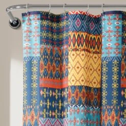 Start off your day the eclectic way! This printed patchwork shower curtain brightens your morning with a mix and match of bold color and pattern. This Misha Shower Curtain is perfect for your maximalist or bohemian style bathroom makeover.