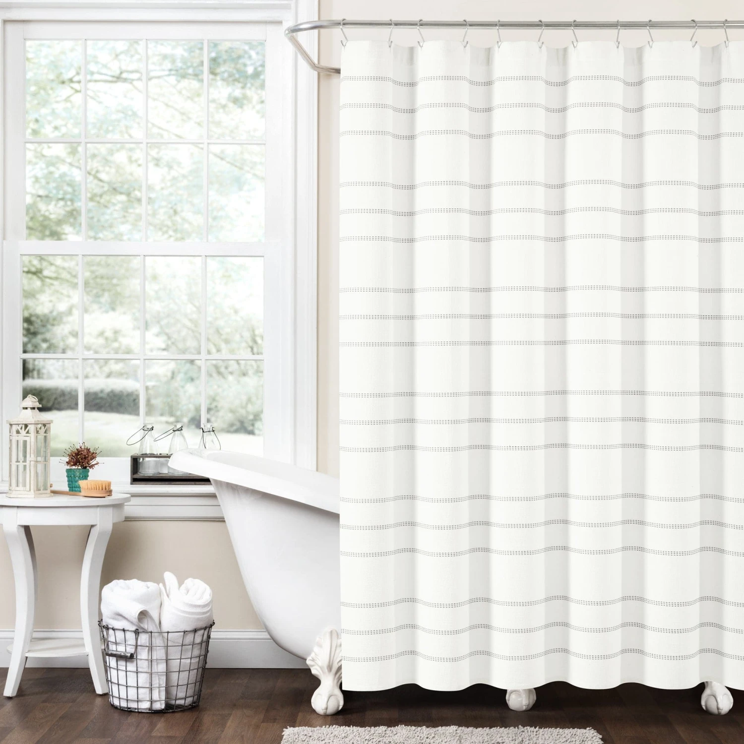 Add some texture to your bathroom with this Modern Galaxy Waffle Woven Cotton Shower Curtain. This eco-friendly GRS certified recycled cotton shower curtain shows rows of stitching detail, adding dimension to this design. Feel at home with this cozy farmhouse themed curtain.
