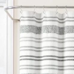 Whether you’re looking to update your current style or are just starting to decorate, this Modern Tufted Stripe Yarn Dyed Recycled Cotton Shower Curtain is perfect for adding in some of your personality. The striped pattern will fit seamlessly into many design themes for your primary, guest or teenager’s bathroom.