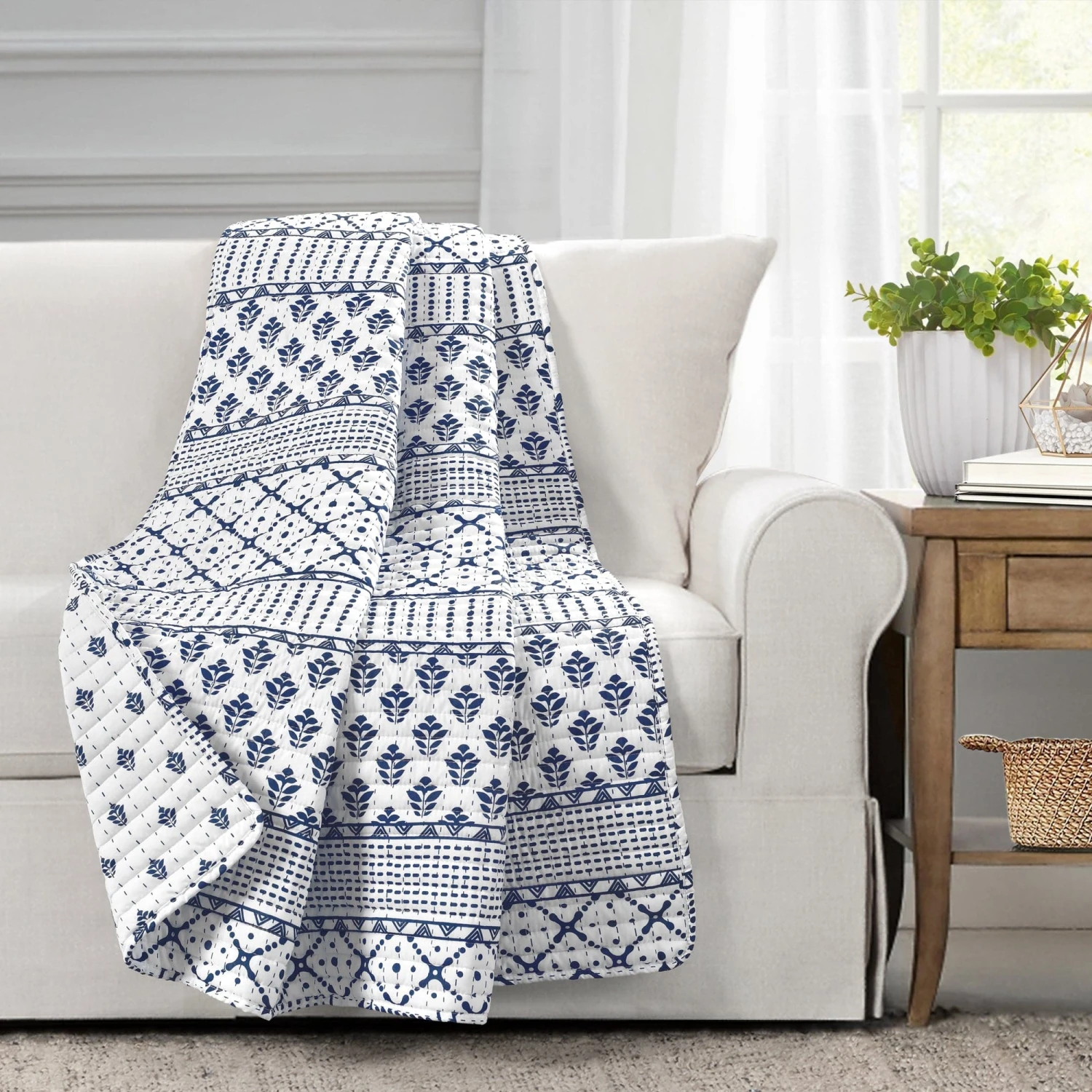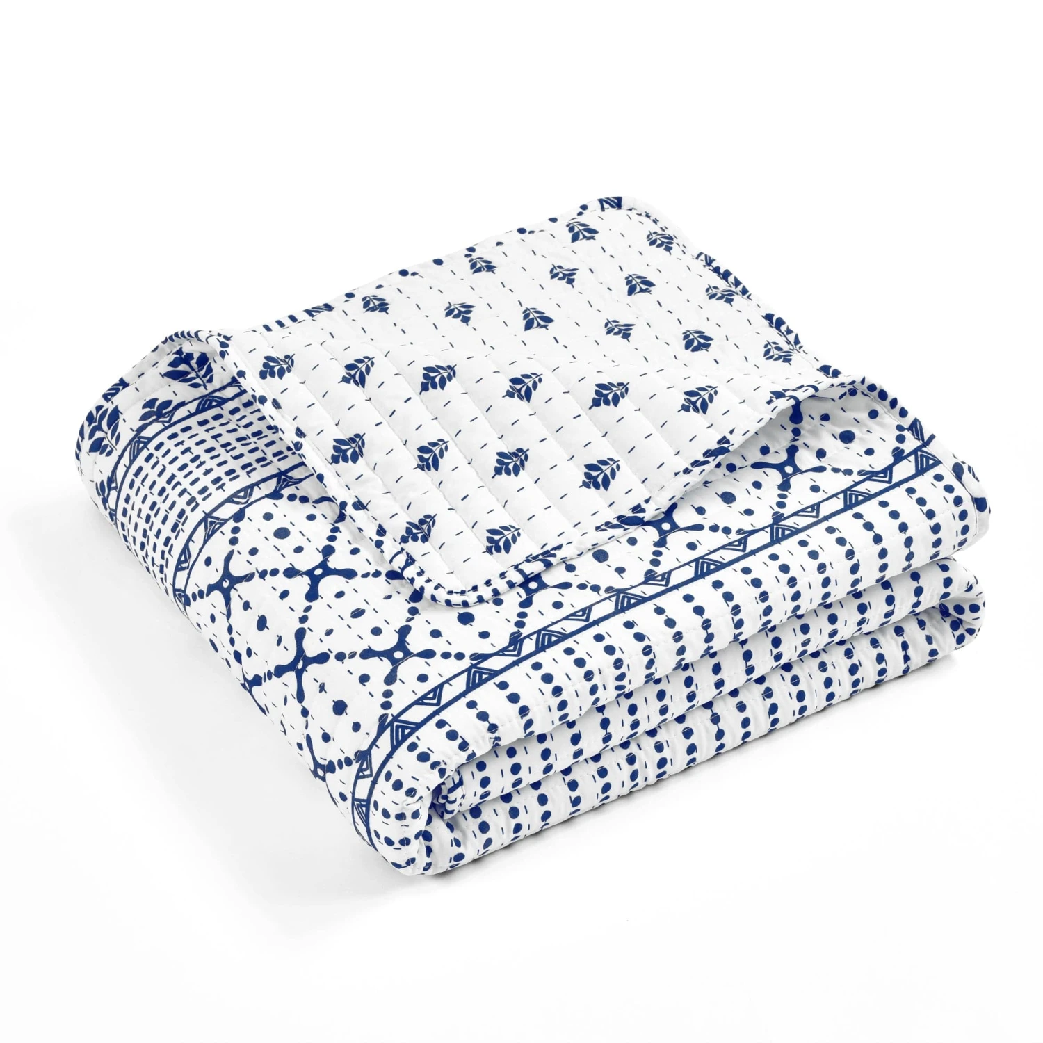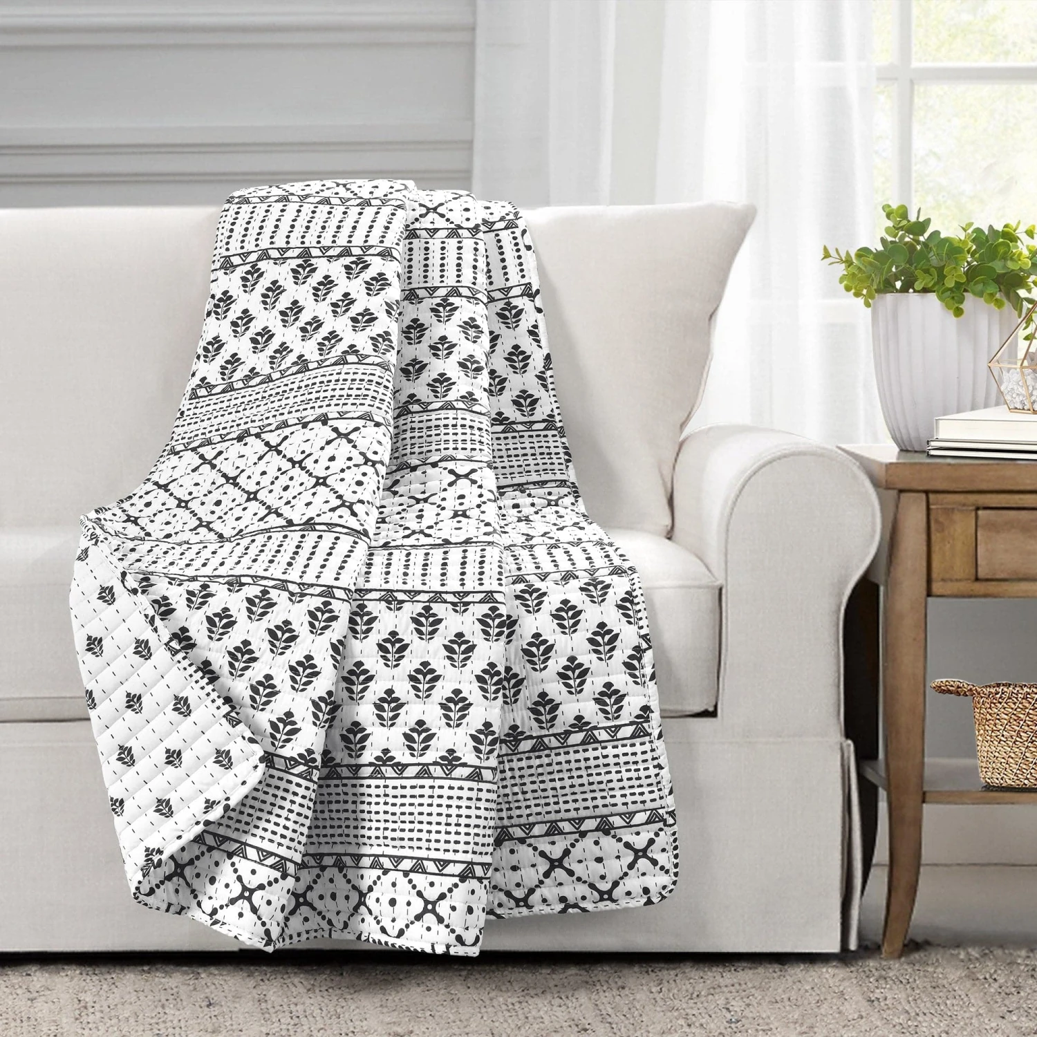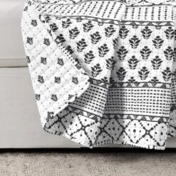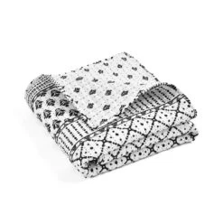 Add Scandinavian hygge style to your bedroom or living room decor with this reversible throw blanket featuring stripes of various geometric patterns. The unique look and soft fabric will create a cozy feeling in any room.