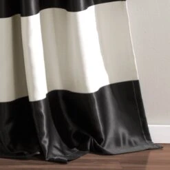 Our Montego Stripe Light Filtering Window Curtain Set features a modern design of thick stripes printed on light blocking fabric.