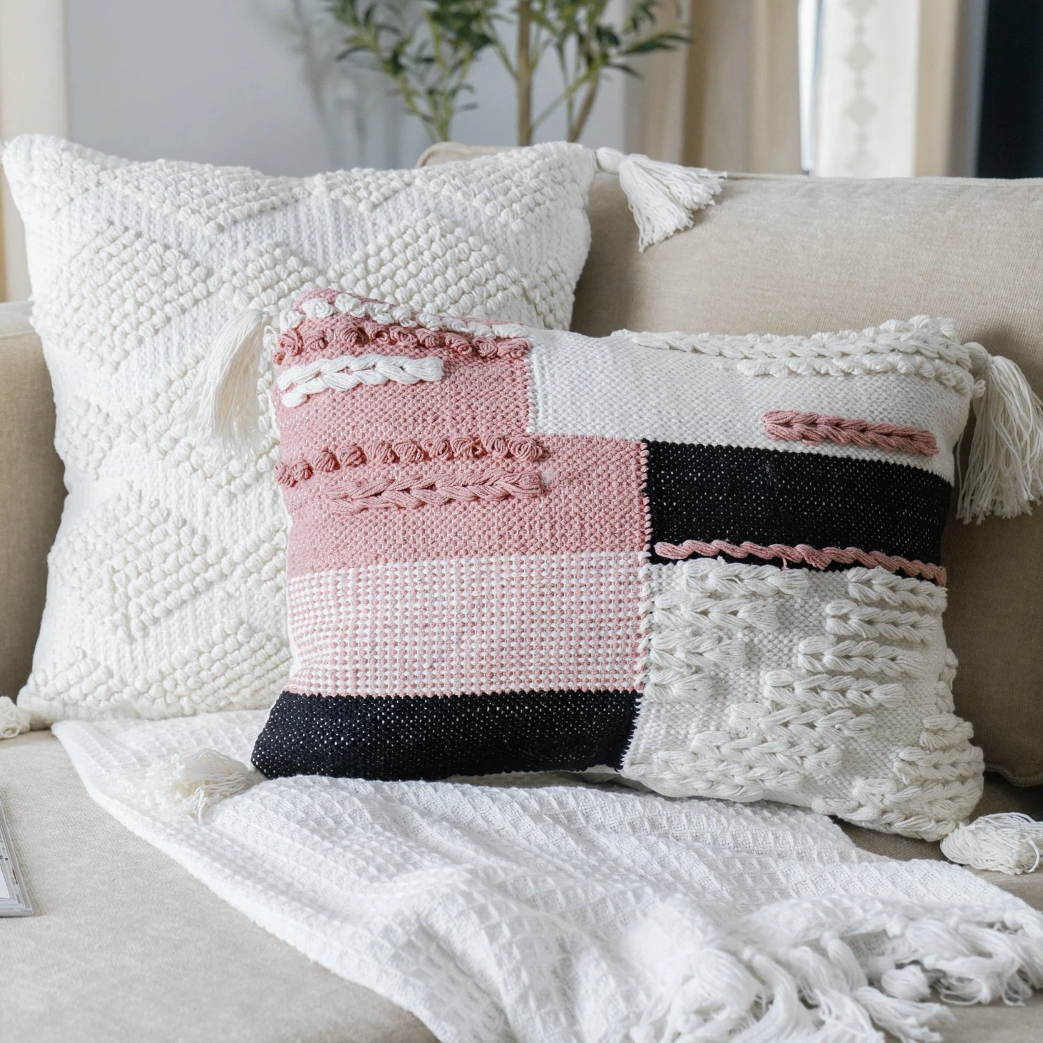 This gorgeous new Naima Woven Decorative Pillow features a geometric pattern brought to life with tassels and tufted textures to satisfy your southwest or bohemian style. Woven with cotton fabric, this poly-filled pillow gives you that perfect balance of lightweight comfort and style.