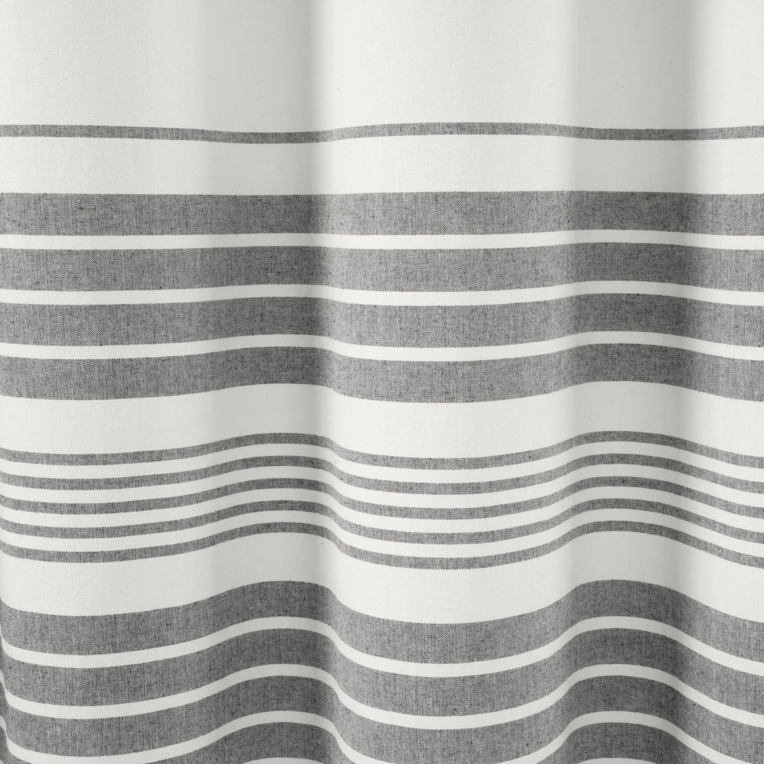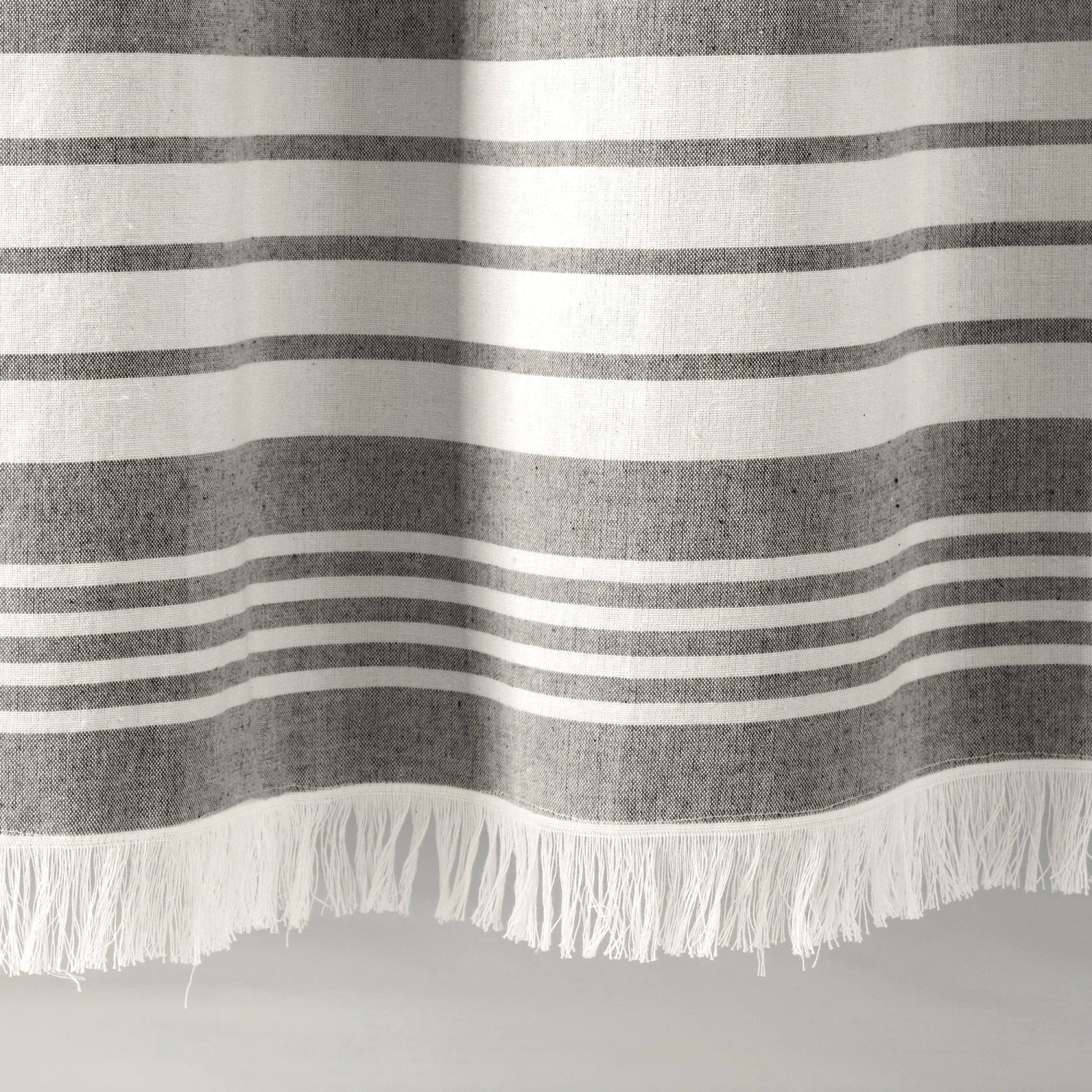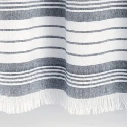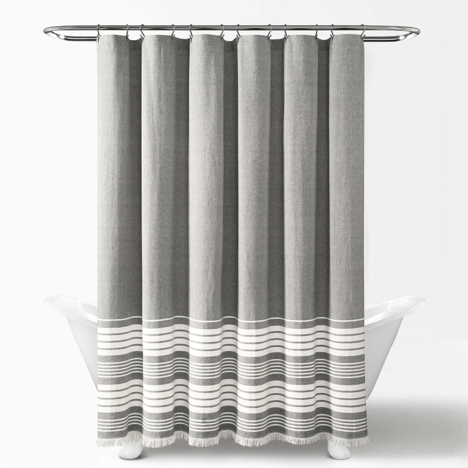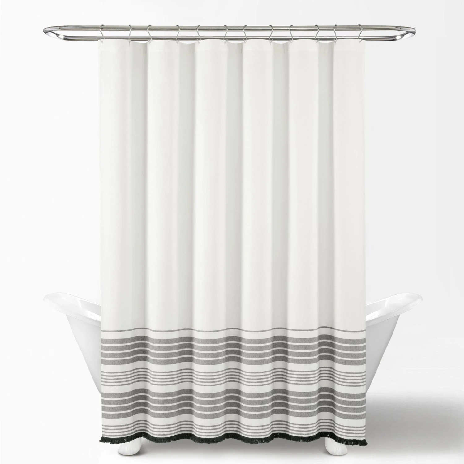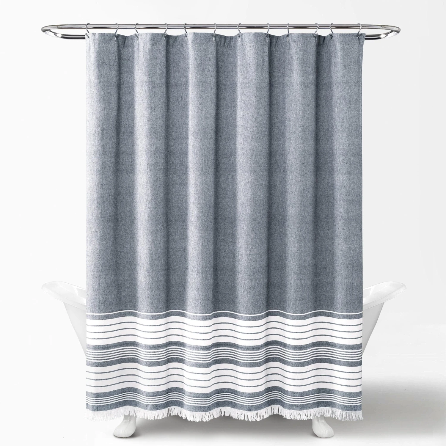 Give your bathroom a contemporary style by adding this Nantucket Yarn Dyed Cotton Tassel Fringe Shower Curtain. The classic color block, modern stripes and trendy tassels converge to create a stylish, gender neutral look.
