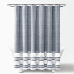 This Nantucket Yarn Dyed Cotton Tassel Fringe Shower Curtain fits well in many design themes, especially a coastal theme. Every time you step into the bathroom, it can feel like you are spending time at your favorite beach house.