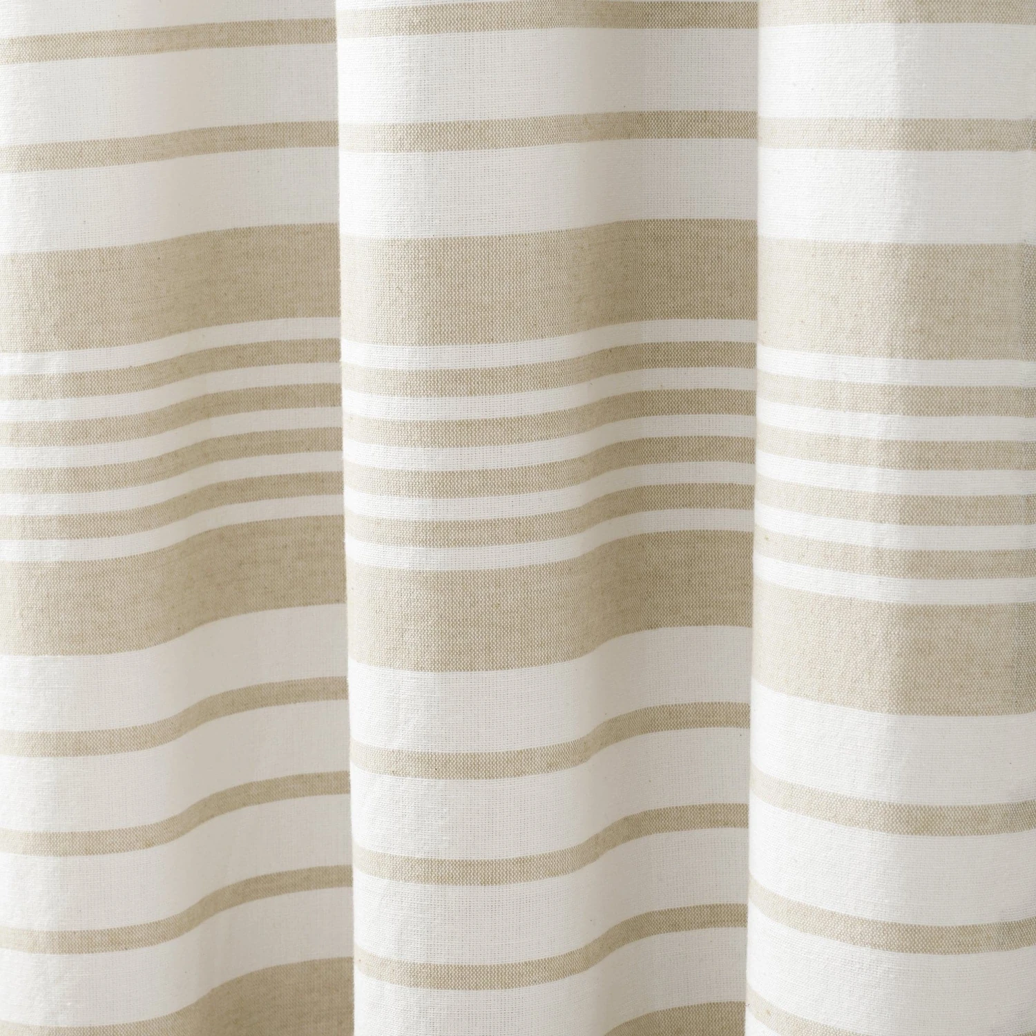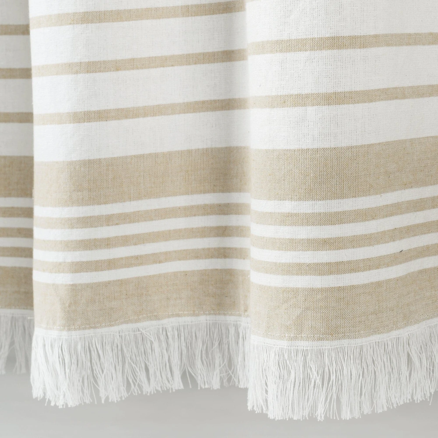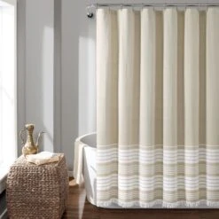 Our Nantucket Yarn Dyed Cotton Tassel Fringe Shower Curtain adds the perfect touch of style to your space without taking over. In addition to coastal designs, you can use this shower curtain in your farmhouse, traditional or even boho design themes. It will be easy to decorate around a shower curtain like this one with its neutral colors and neutral stripe pattern.