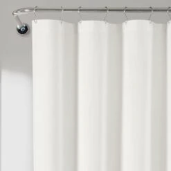 Measuring 71 inches wide and a total of 72.5 inches long (including the fringe tassel), the Nantucket Yarn Dyed Cotton Tassel Fringe Shower Curtain will fit most any bathtub and installs easily with standard shower curtain rings or hooks. The cotton fabric gives it an excellent hand feel.