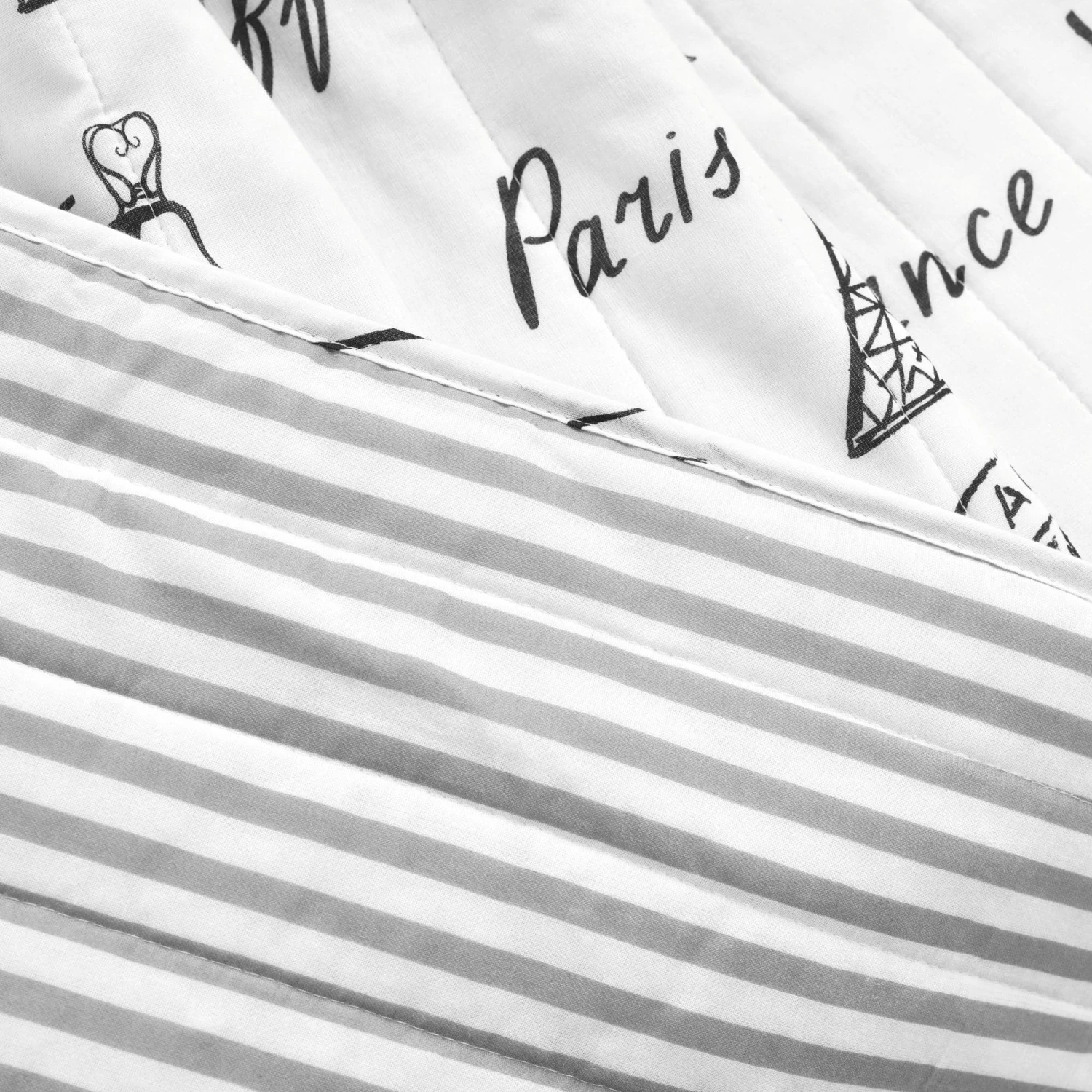The reverse side of this Paris Bonjour Reversible Cotton Throw features a simple vertical stripe pattern printed against a white background. This gives you two great looks in one item. When you’re ready for a change, simply turn the throw over to the other side and you have a whole new look. This side with its more subtle print is ideal for layering.