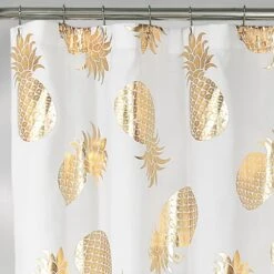 Measuring 72 inches on each side, the Pineapple Toss Shower Curtain will fit nearly any bathtub. It can be hung easily with any standard shower curtain hooks or rings. Its unique design will create an enchanting look in your space.