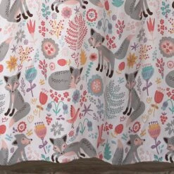 Children of all ages will love this fun and adorable Pixie Fox Shower Curtain, which features foxes playfully frolicking in a field of various trees, flowers and even birds! The fabulous design is printed on Microfiber.