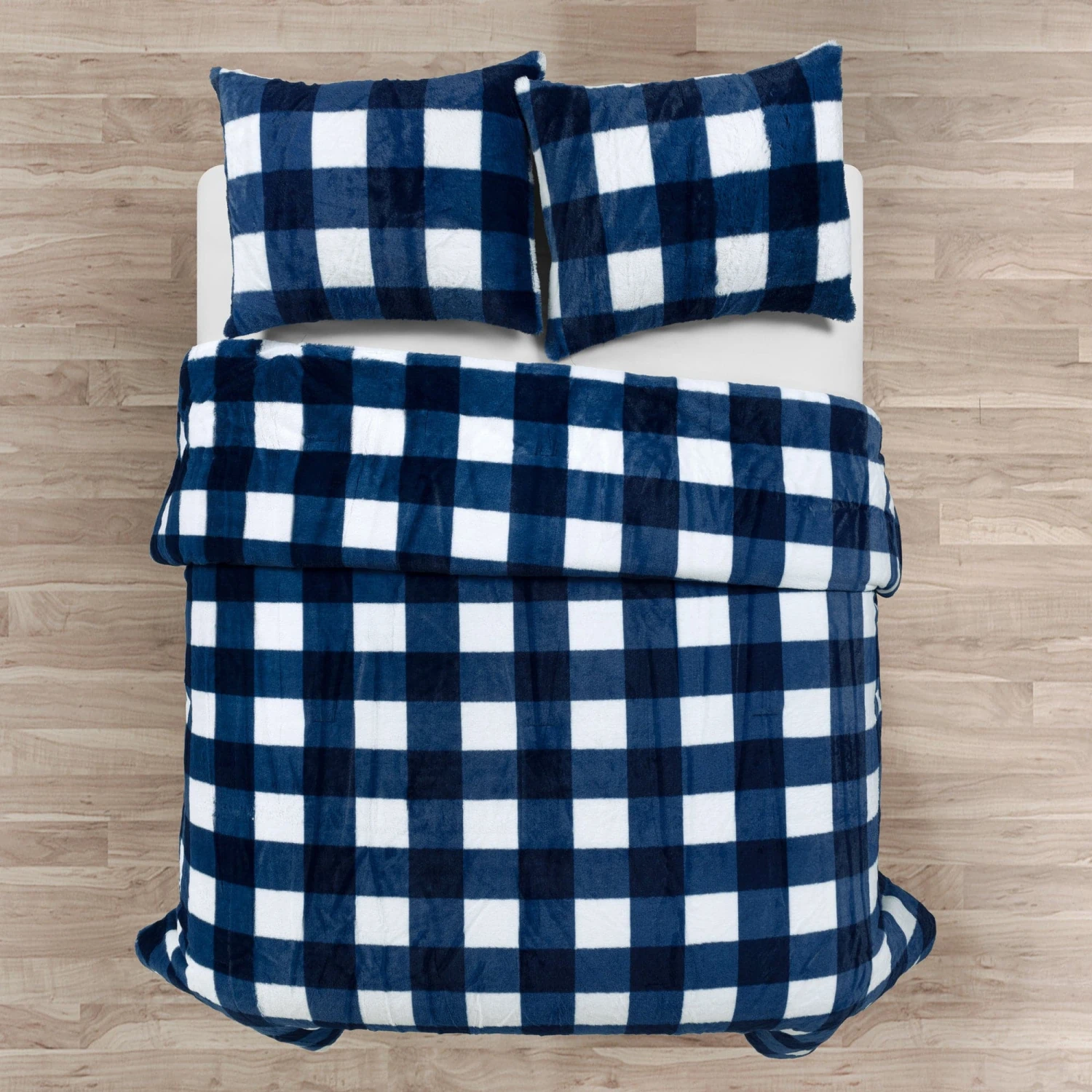 This plush Plaid Ultra Soft Faux Fur All Season Comforter Set comes with the comforter, and matching sham(s). One shame is included in the Twin size, and two shams are included in the larger sizes.
