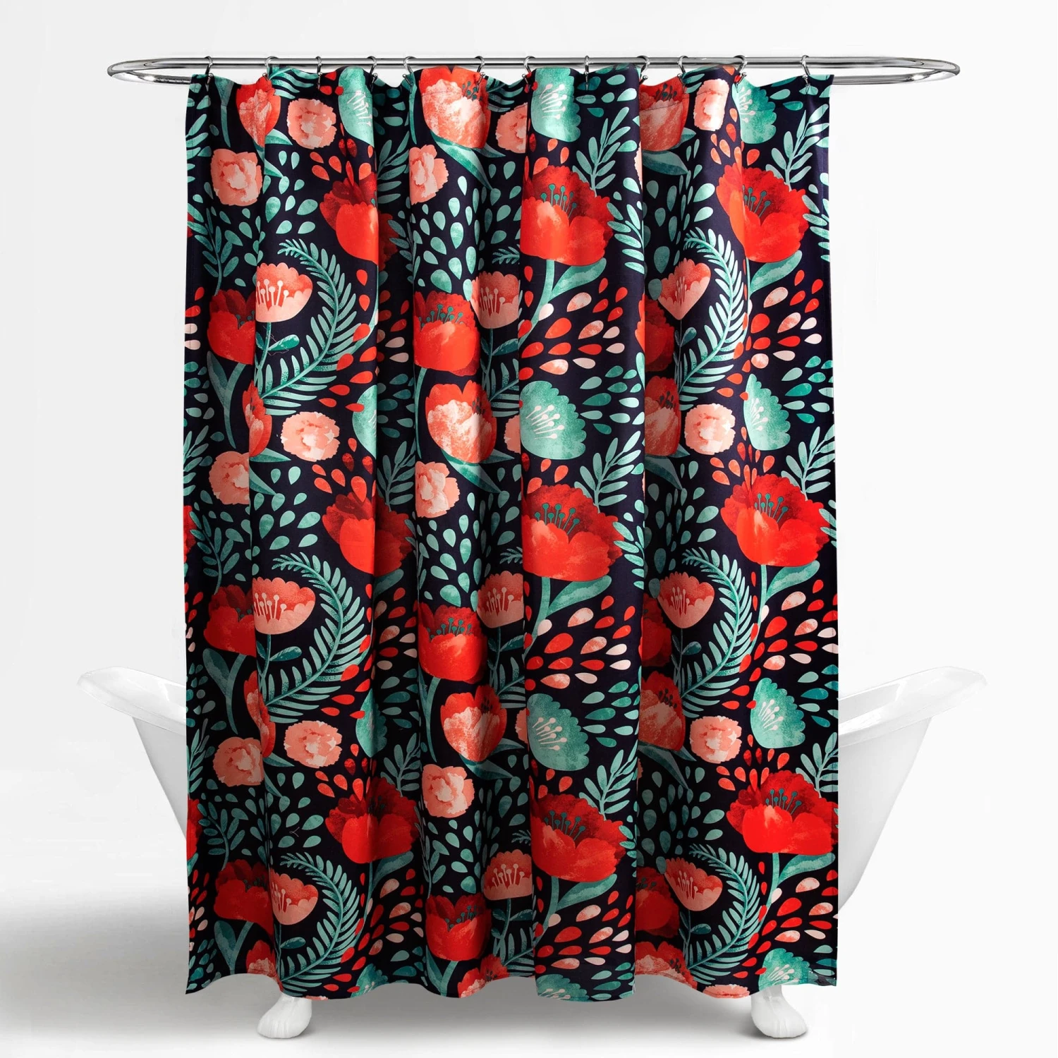 The Poppy Garden Shower Curtain is available in multiple colors to make it easy to match with your existing bathroom decor.
