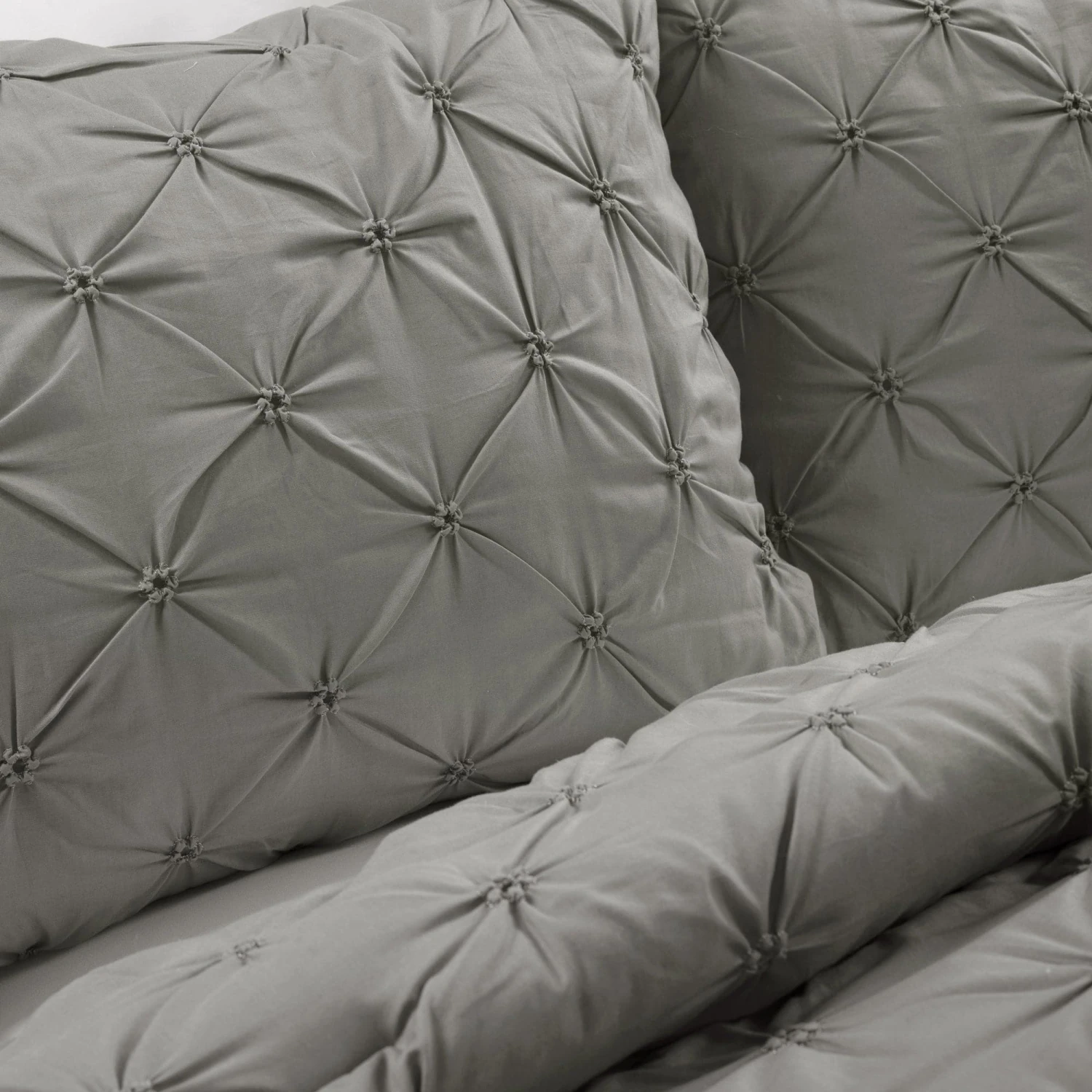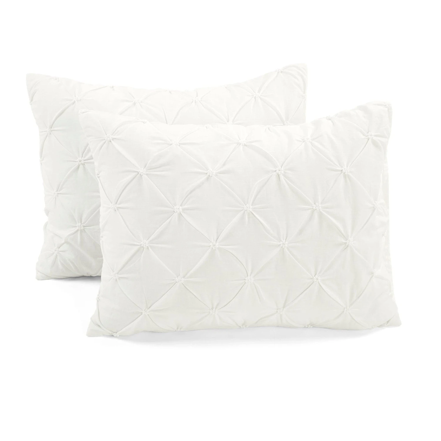 Because the look of the Ravello Pintuck Cotton Comforter 3 Piece Set is neutral with its solid color design, you will have no problem fitting it into many design themes from your modern bedroom to a traditional cottage bedroom theme.