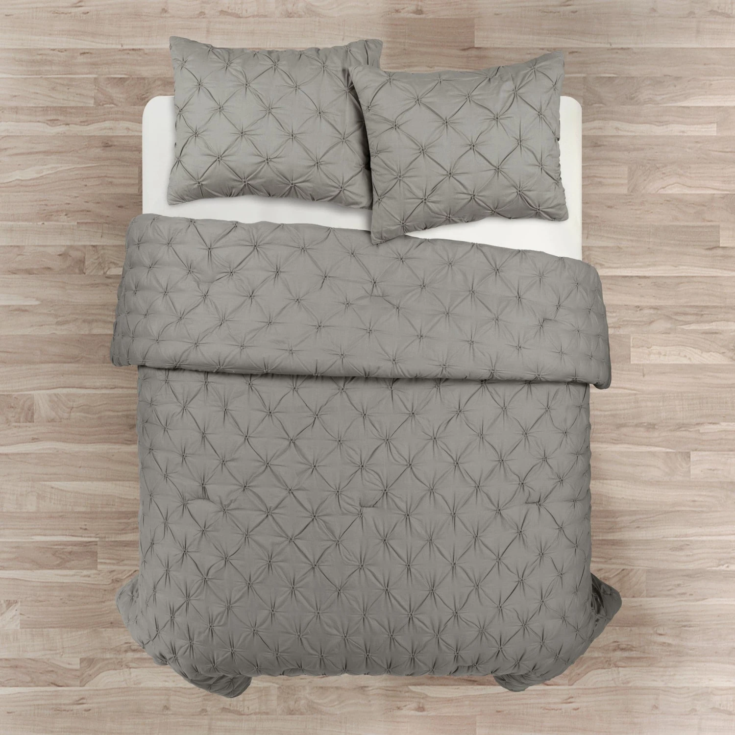The textured look created by the pintucking detail gives this Ravello Pintuck Cotton Comforter 3 Piece Set elevated style that is easy to layer with coordinating pieces, such as a blanket and decorative accent pillows.