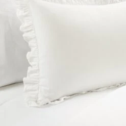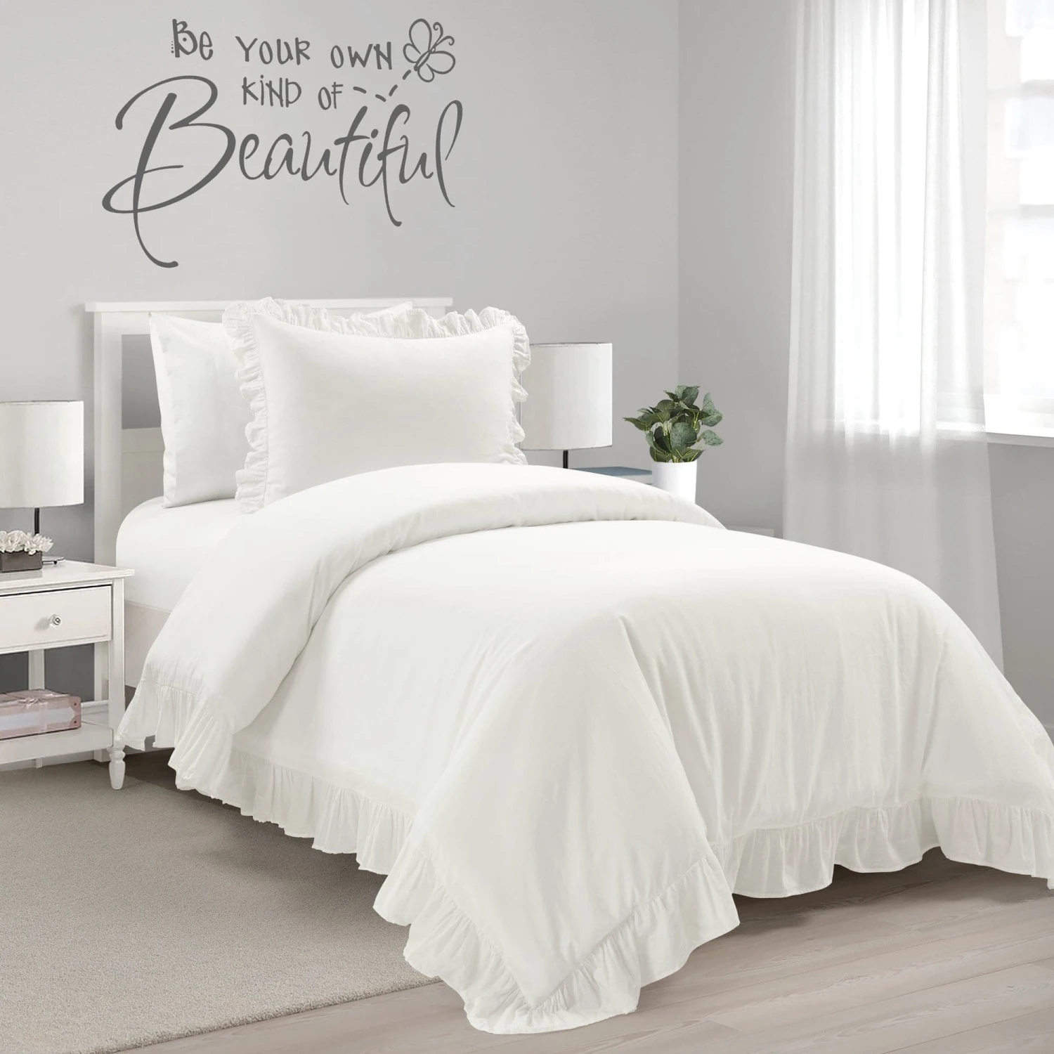 This beautiful Reyna 100% Cotton Duvet Cover Set features a frilly ruffled border on both the duvet and shams which will brighten any bedroom.