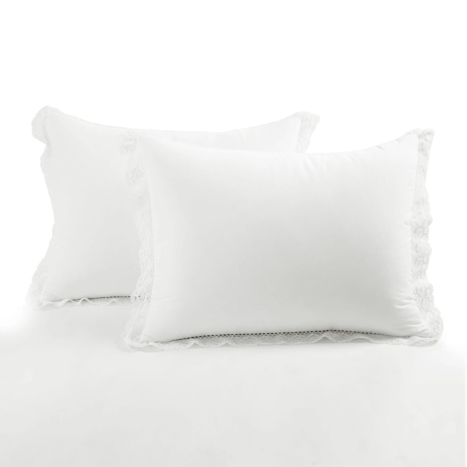Cozy up in your cottage styled bedroom for a relaxing and restful sleep with this lace trimmed comforter set. The solid color selection makes this Rosalie Cottagecore Lace Trim 5 Piece Comforter Set easy to style and layer with accent pieces.