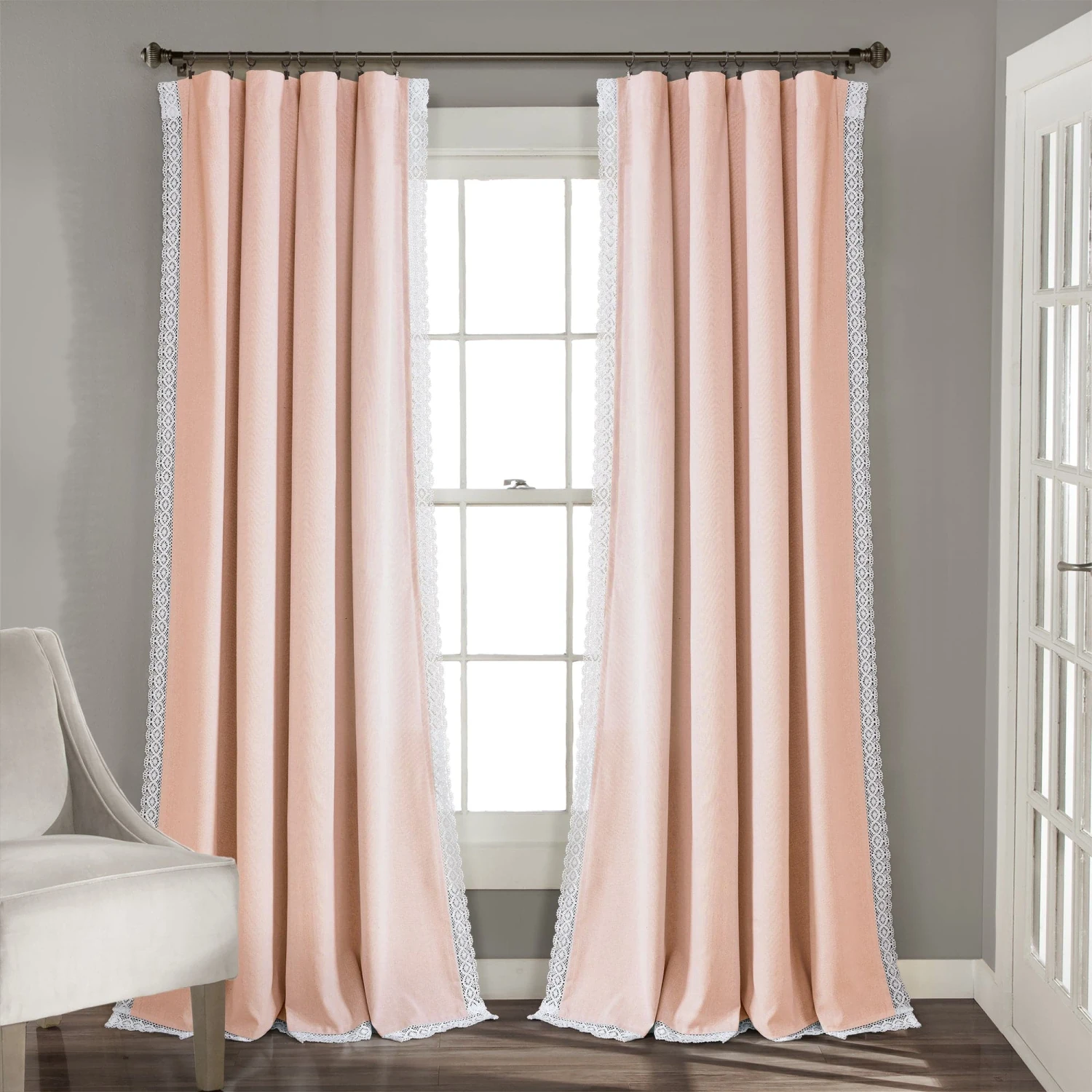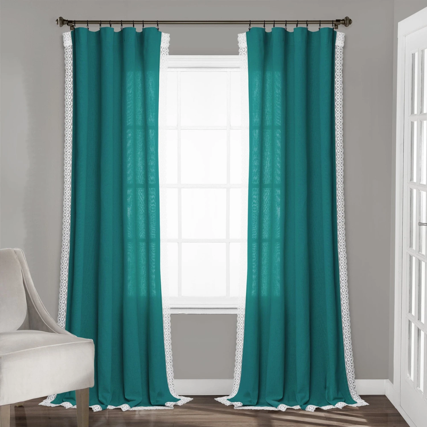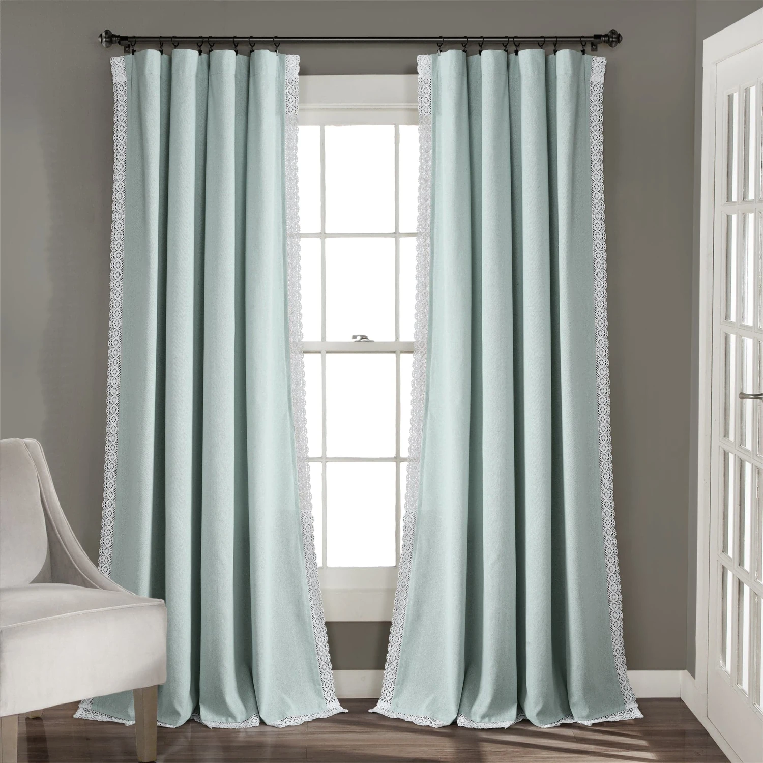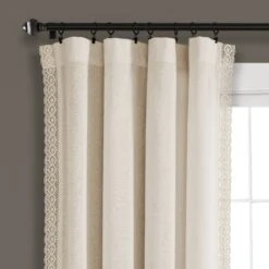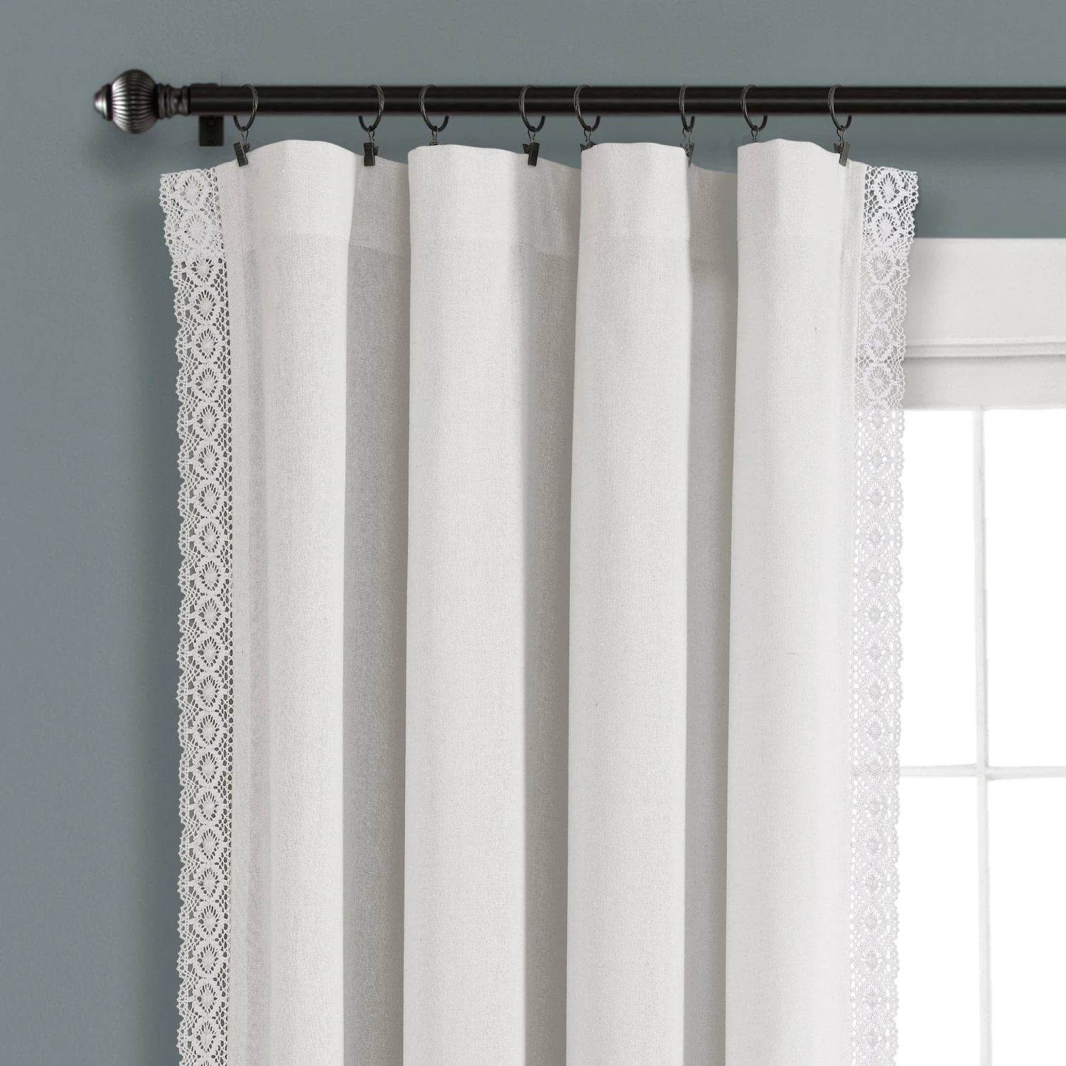 The Rosalie Window Panel Set is simply elegant with a solid faux linen fabric and vintage styling. The panels feature a beautiful and delicate lace border along three of the four sides.