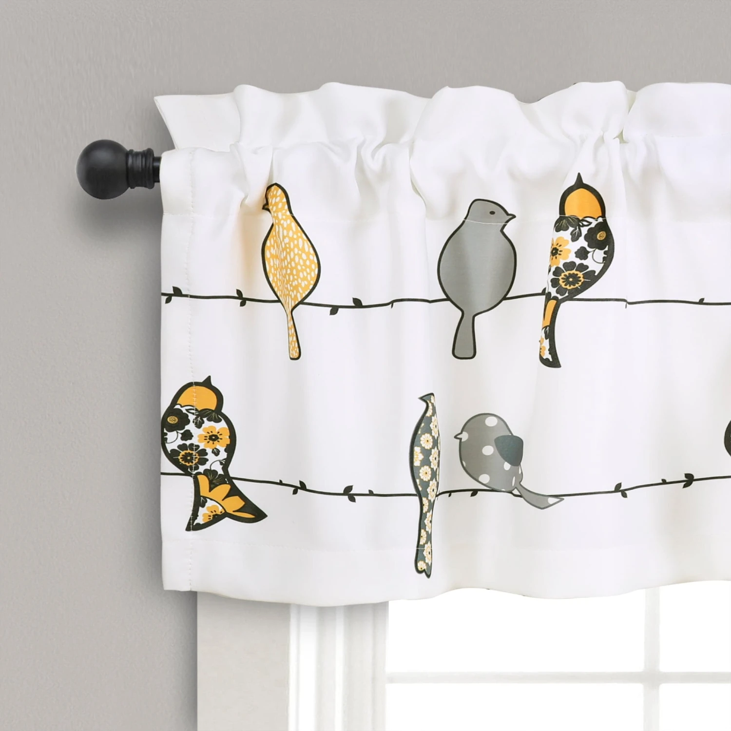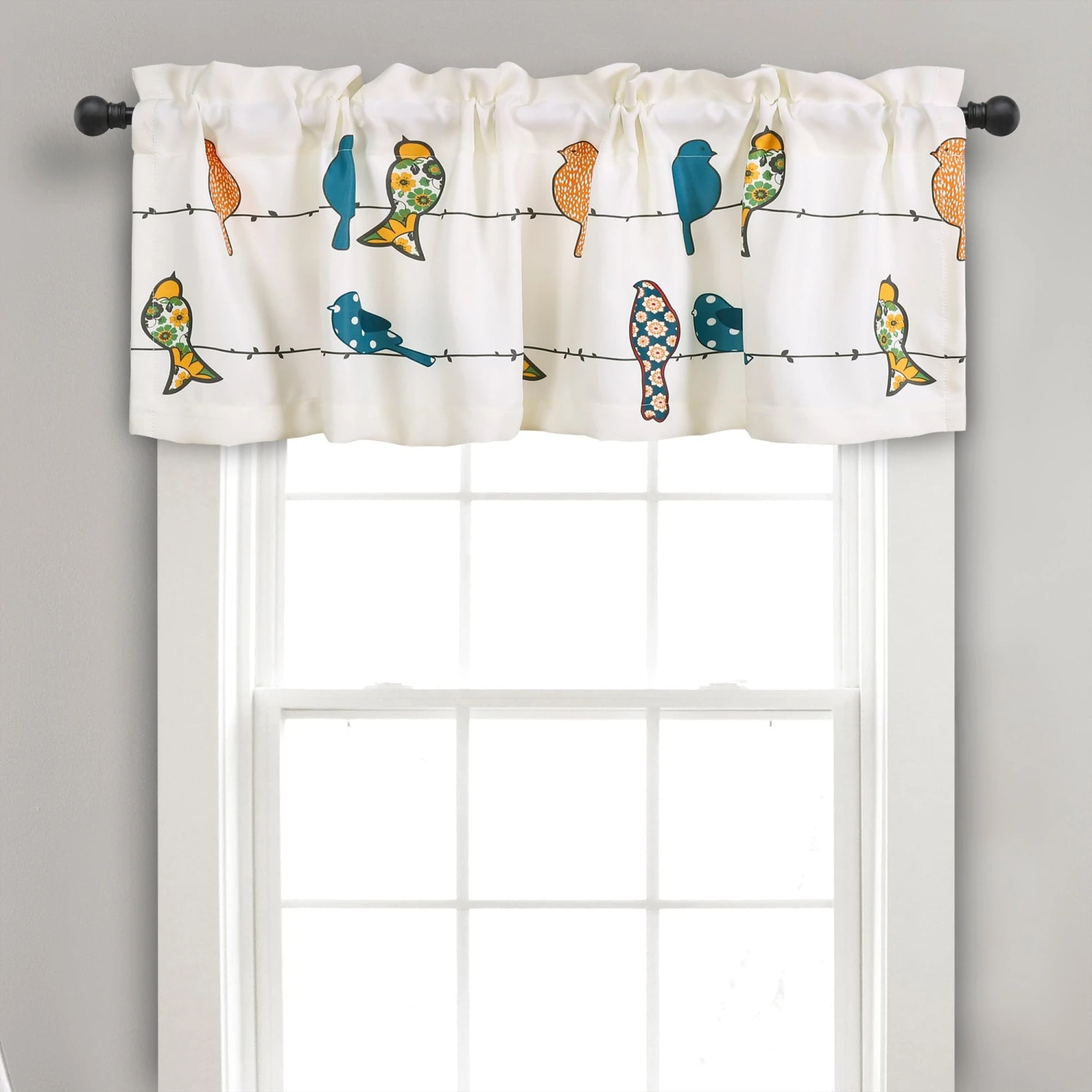 This Rowley Birds Valance brings the feel of the city into the home with an eclectic design of colorful birds sitting on wires. The unique design also fits well in a farmhouse or boho look.