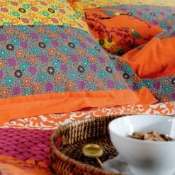 Colors and patterns are two keys to the boho style. Decorate your bold bedroom with the bold stripes of this Royal Empire Reversible Cotton Duvet Cover 3 Piece Set. The reversible nature of this item gives you a second chance to style with a floral design.