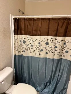 The Royal Garden Shower Curtain measures 72 inches on each side. It hangs easily with any standard shower curtain hooks or rings.