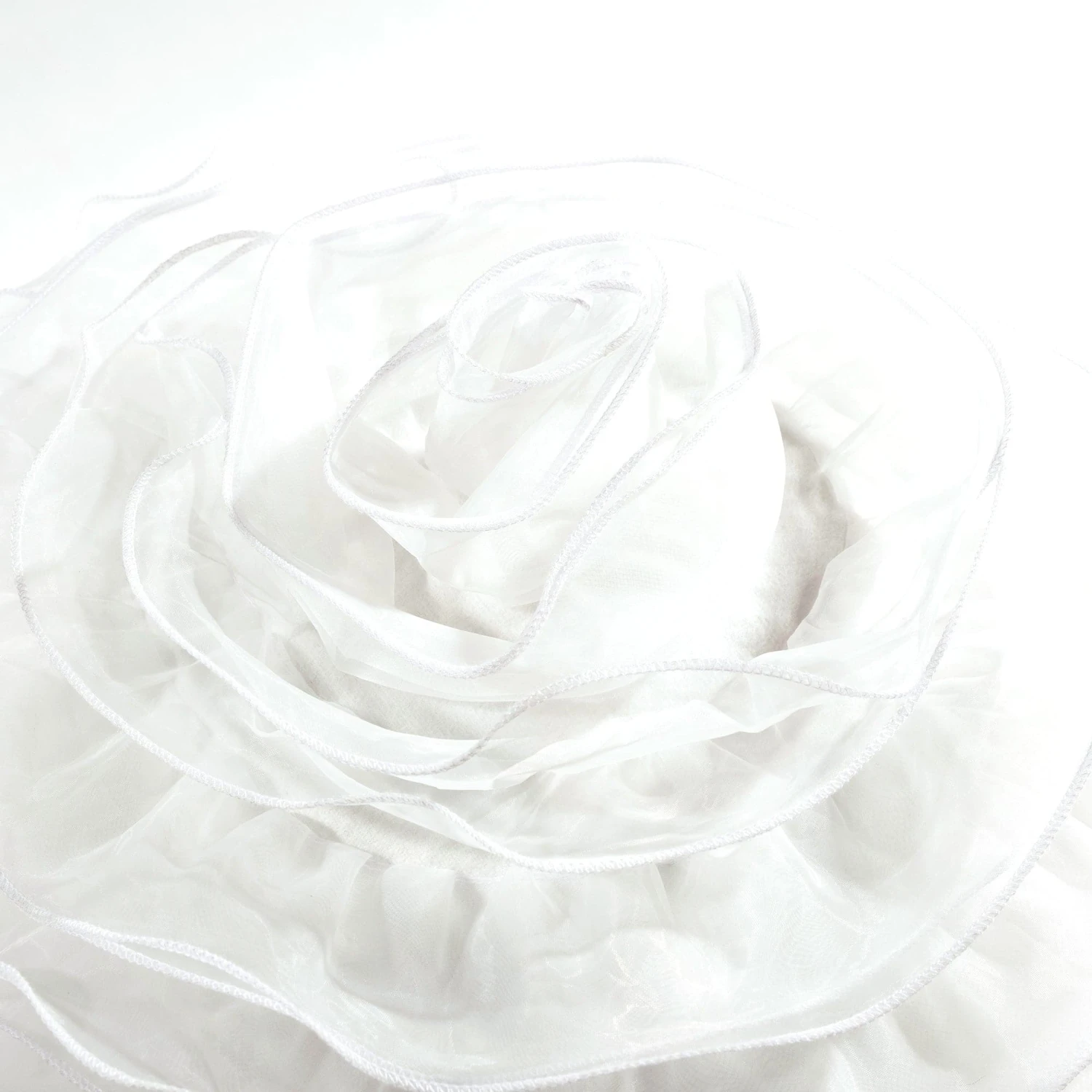 This circular accent pillow measures 17 inches in diameter. This Ruffle Flower Layer Round Decorative Pillow is a standard size that is large enough to make an impact on your design but not so big that it will take over the look of the room.