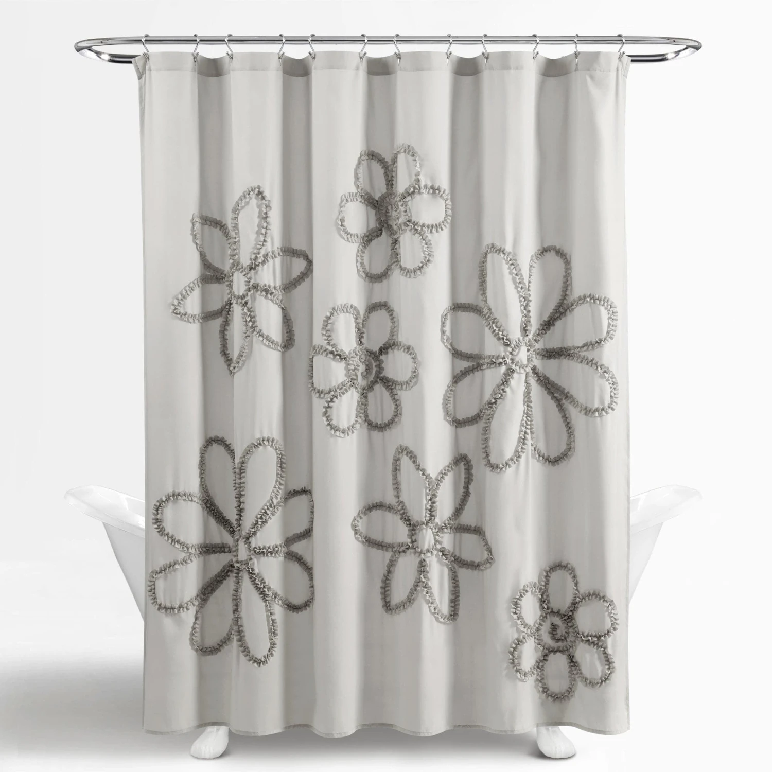 Fancy, frilly and unique are all words that describe this shower curtain. Soft brushed poly creates a perfect backdrop for the flower details, giving this shower curtain the perfect look. The Ruffle Flower Shower Curtain can change the whole look of your bathroom without overwhelming it.