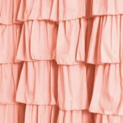 Measuring 72 inches wide by 72 inches tall, this Ruffle Shower Curtain is the perfect size for just about any bath tub. This style is available in many color options. It easily hangs with any shower curtain rings or hooks. The material is thin, so adding a liner is highly recommended.