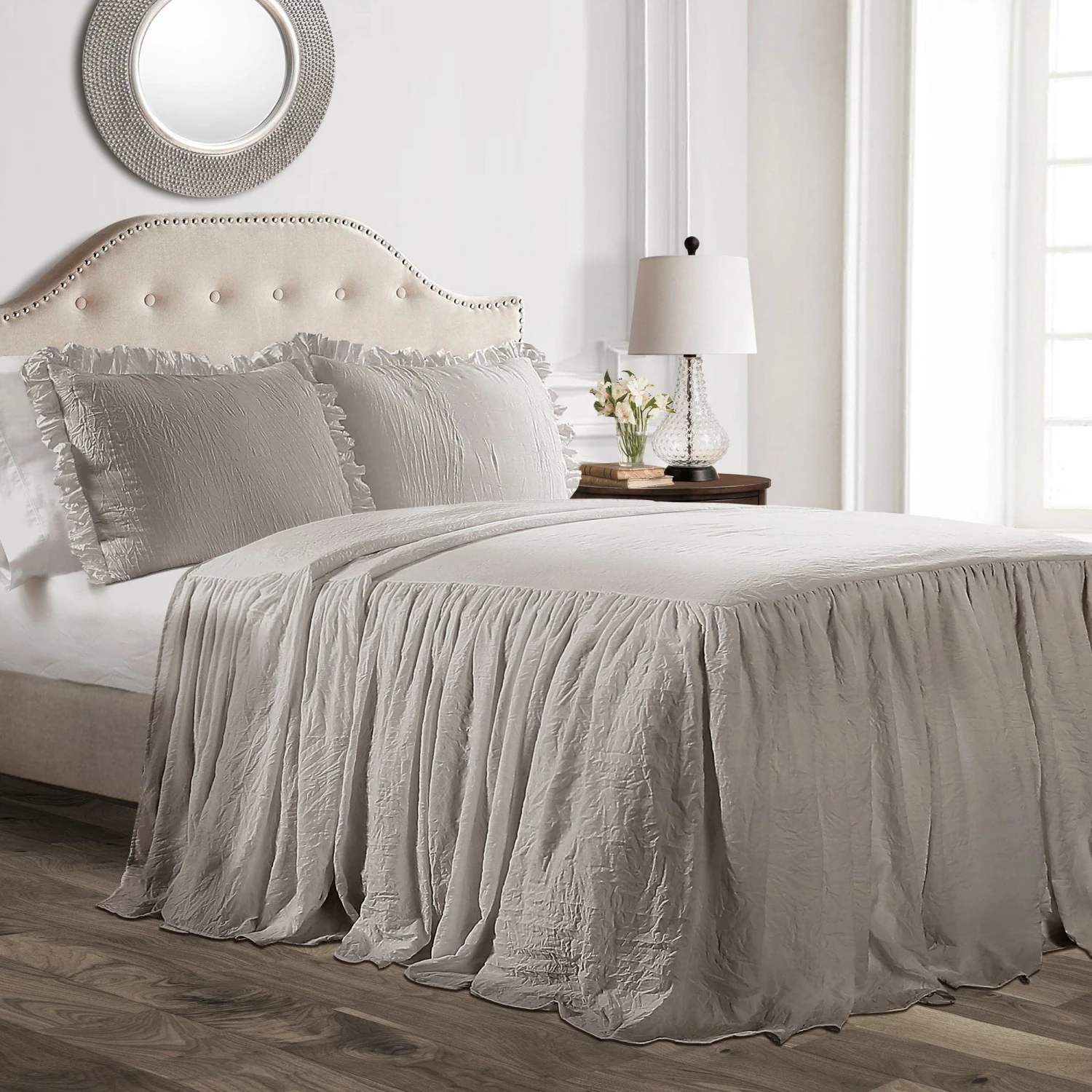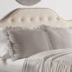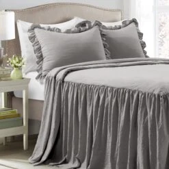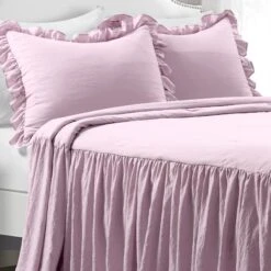 This solid color Ruffle Skirt Bedspread Set is soft and luxurious feeling with beautiful ruffle detail. Because it is lightweight, it is ideal for layering and for use during the spring and summer.