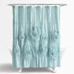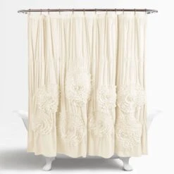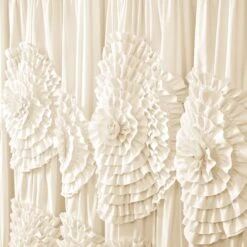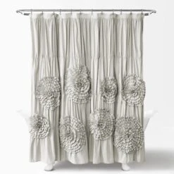 Elegant, fancy and unique are all words that describe this shower curtain. Soft brushed poly with ruching create a perfect backdrop for the crafted flower details that give this shower curtain the perfect look. The Serena Shower Curtain can change the whole look of your bathroom without overwhelming it.