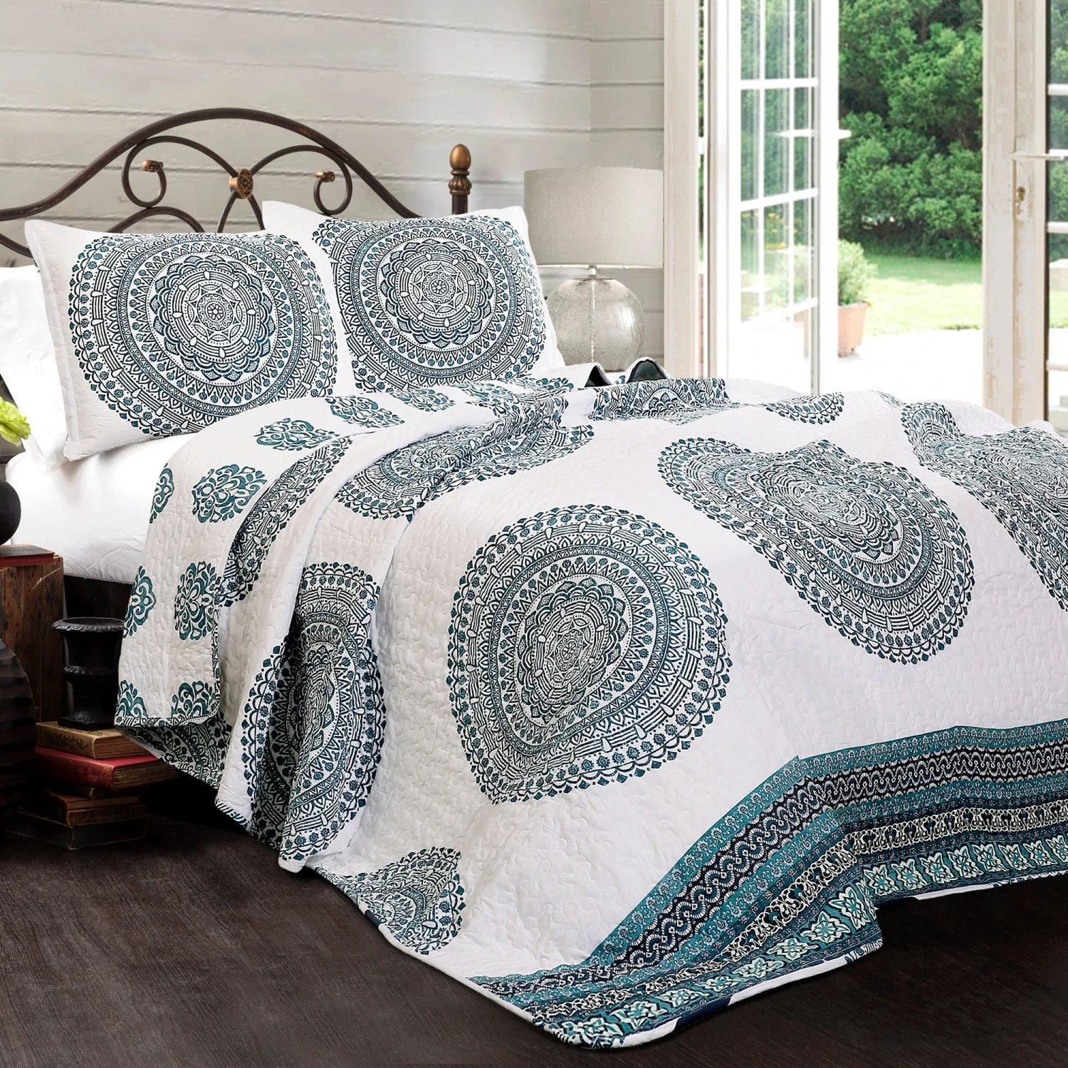 This Shaila Medallion Quilt 3 Piece Set is ideal for a young adult, teenager, first apartment, dorm room or a guest bedroom.
