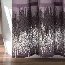 With multiple color options to choose from, it’s easy to find the perfect color match for your existing decor with this Shimmer Sequins Shower Curtain.