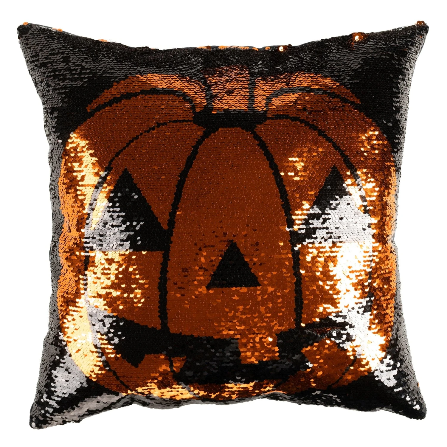 It’s that time of year again! Add some fun and festivity to your decor with this Sparkle Pumpkin Decorative Pillow. The black and orange sequins are sure to get you into the Halloween spirit.