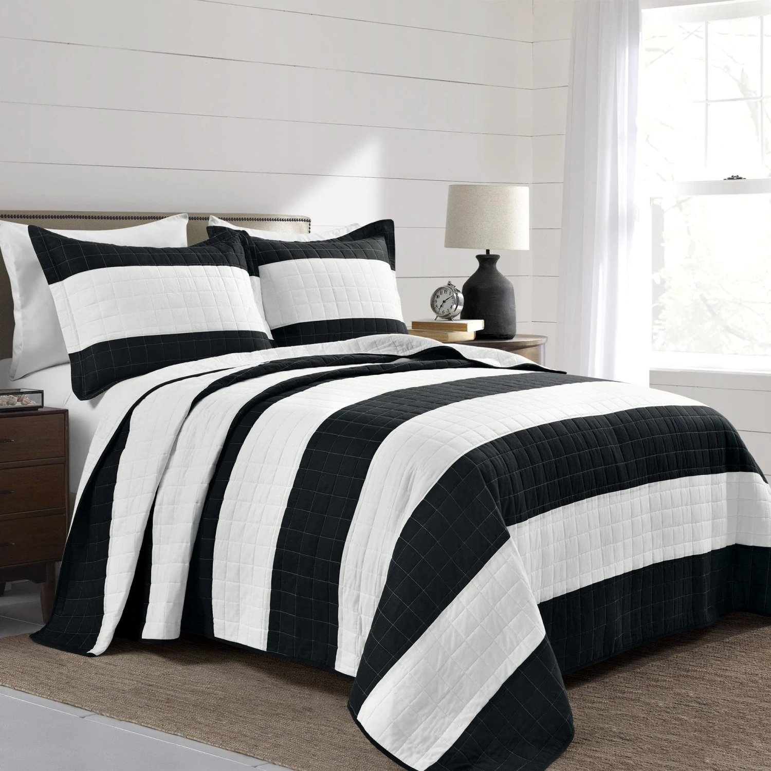 There’s no better way to add a crisp, clean feel to your bedroom than by adding the Lush Decor Stripe 3 Piece Quilt Set. The modern horizontal pattern enhances the design of any bedroom. The stripe quilt is 100% cotton and soft to the touch.