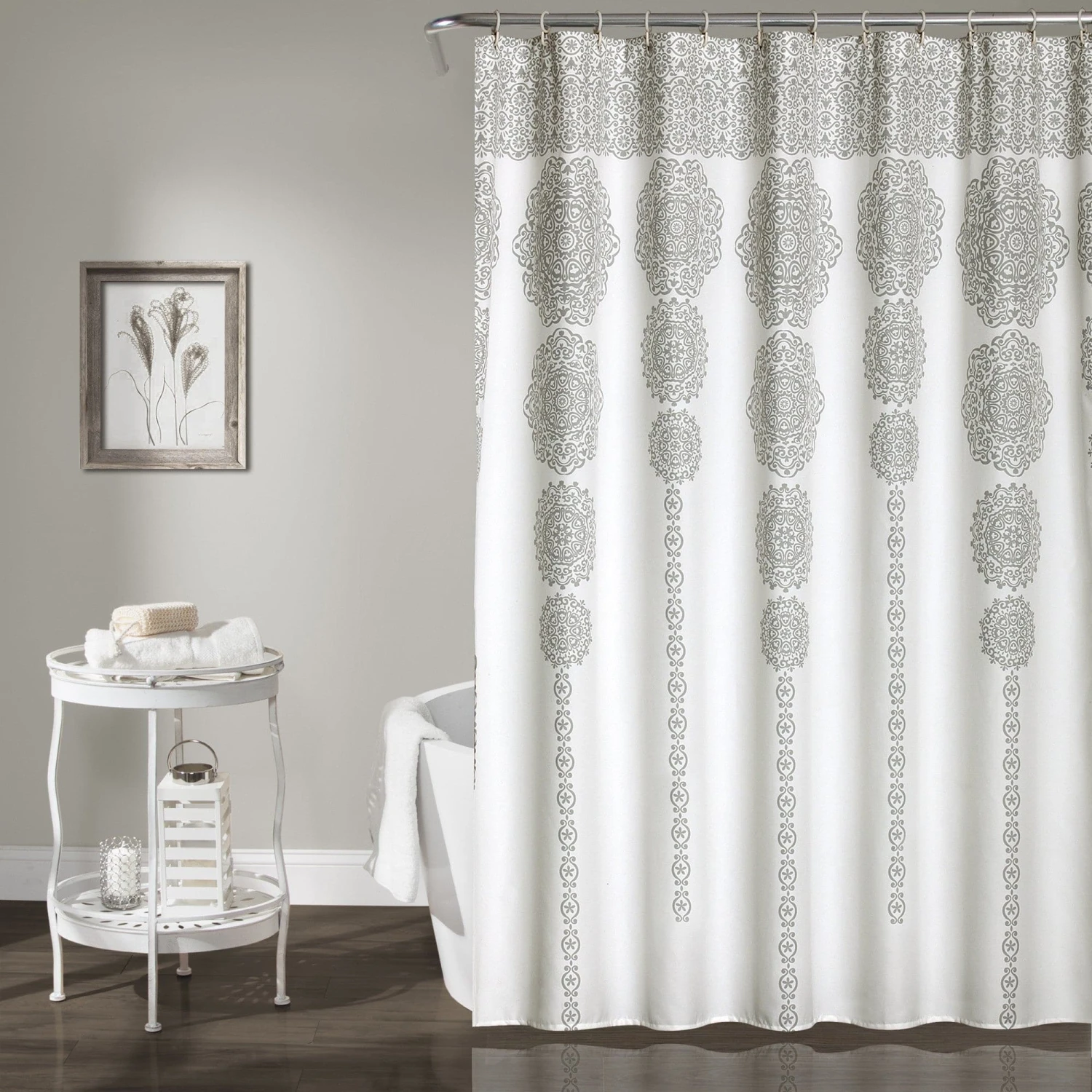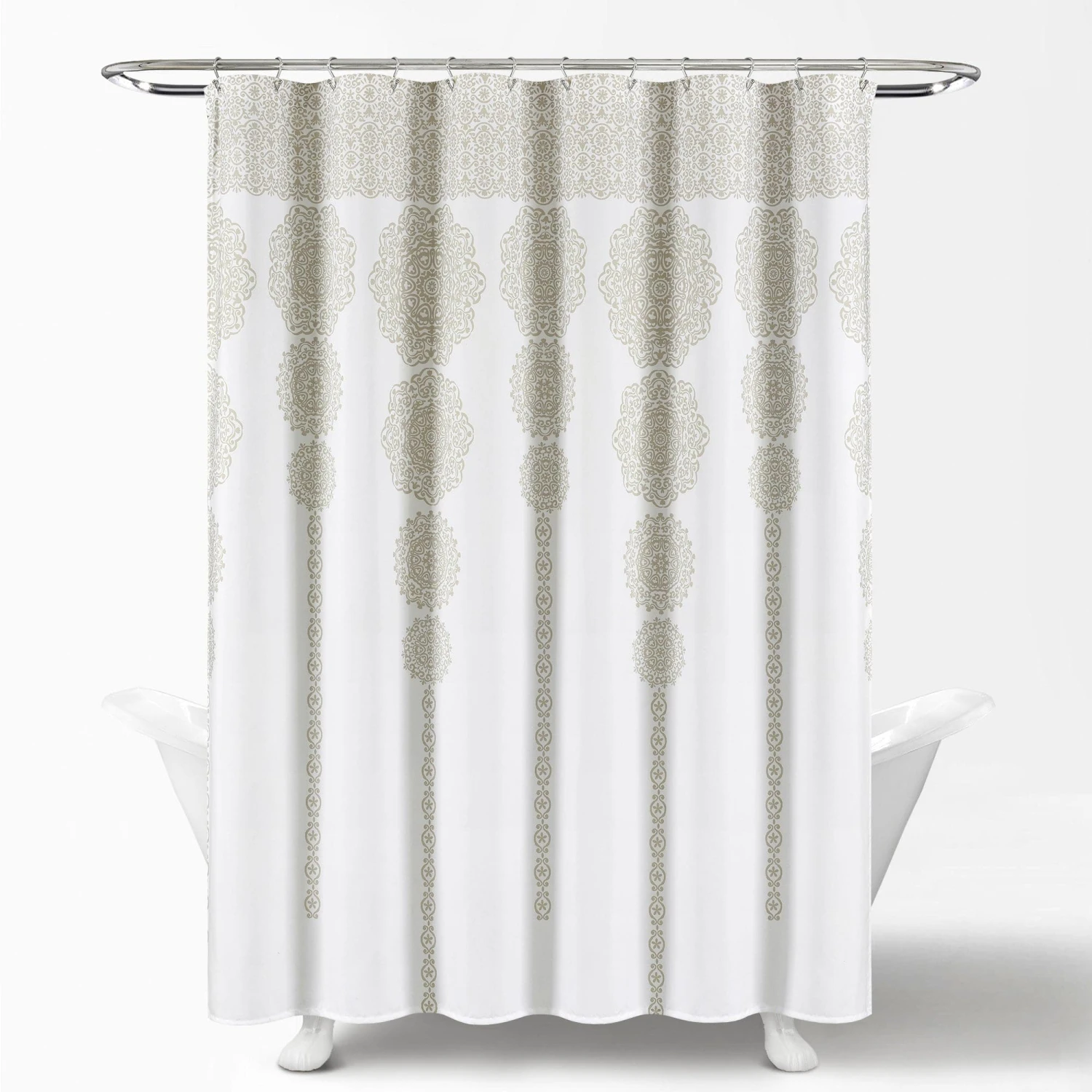 Our Stripe Medallion Shower Curtain is perfect for a master bathroom or guest bathroom makeover. The light, neutral shades create a calm and peaceful atmosphere for a relaxing bath, which can sometimes be your only time to escape chaos in your home.